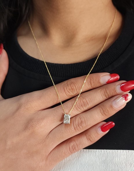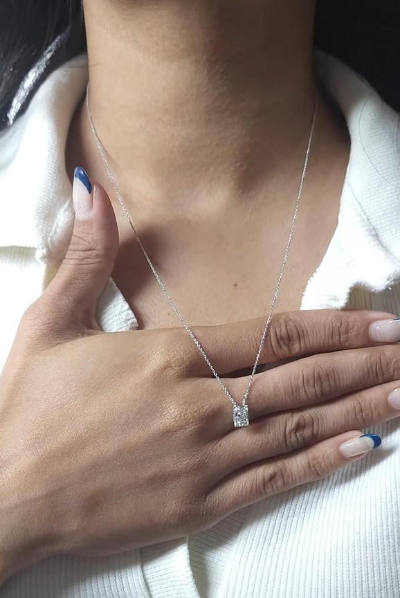 The chain is attached at the top so that the diamond sits comfortably on you when you wear it.