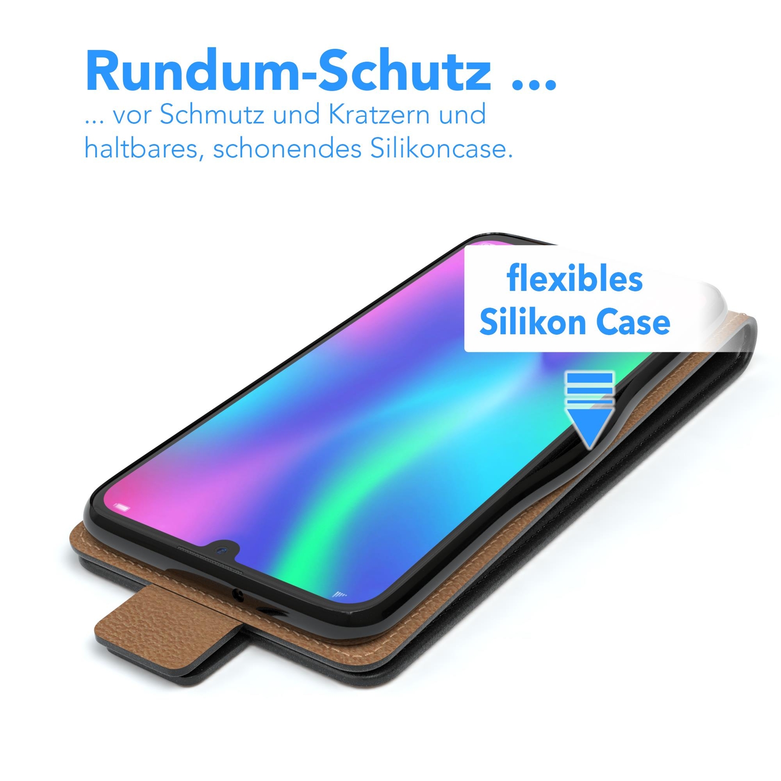 Das vertikale Case im Flipstyle schützt Ihr Smartphone zuverlässig vor Kratzern, Staub und vorzeitigem Verschleiß.