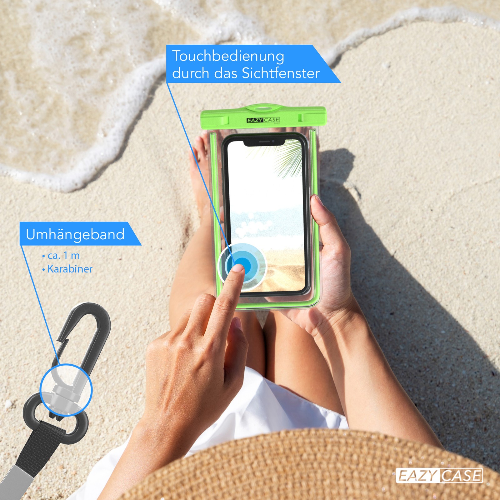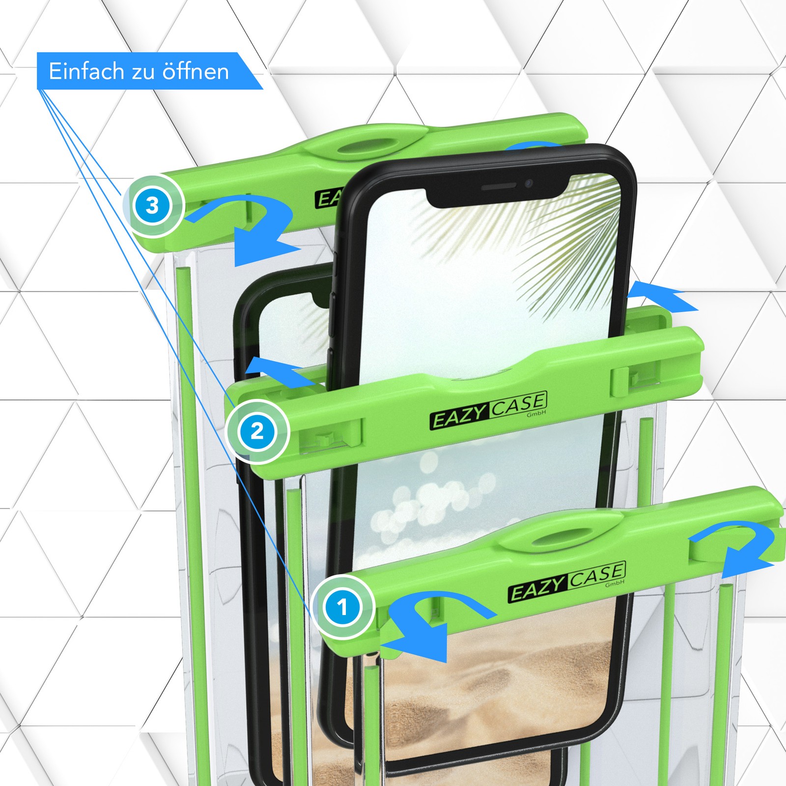 Die IPX8 zertifizierte Handytasche garantiert weiterhin die volle Bedienbarkeit Ihres Handys, selbst unter Wasser! Außerdem ermöglicht das Trageband mit Karabineranhänger ein einfaches Transportieren!