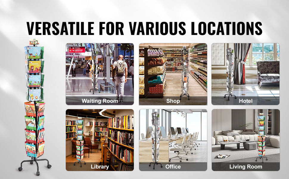 Whether it's airport lounge, store, hotel, library, office, or living room, our spinning greeting cards stand meets diverse need. Not only does it enhance the display of your promotional materials, but it also adds an element of elegance and professionalism to your space.