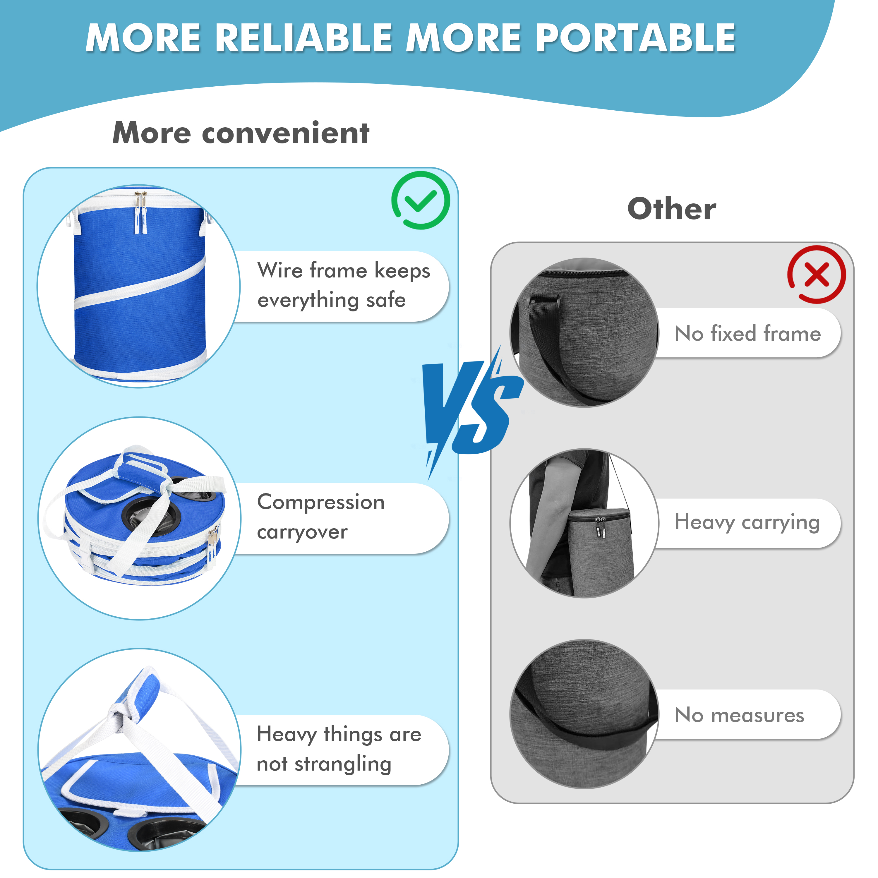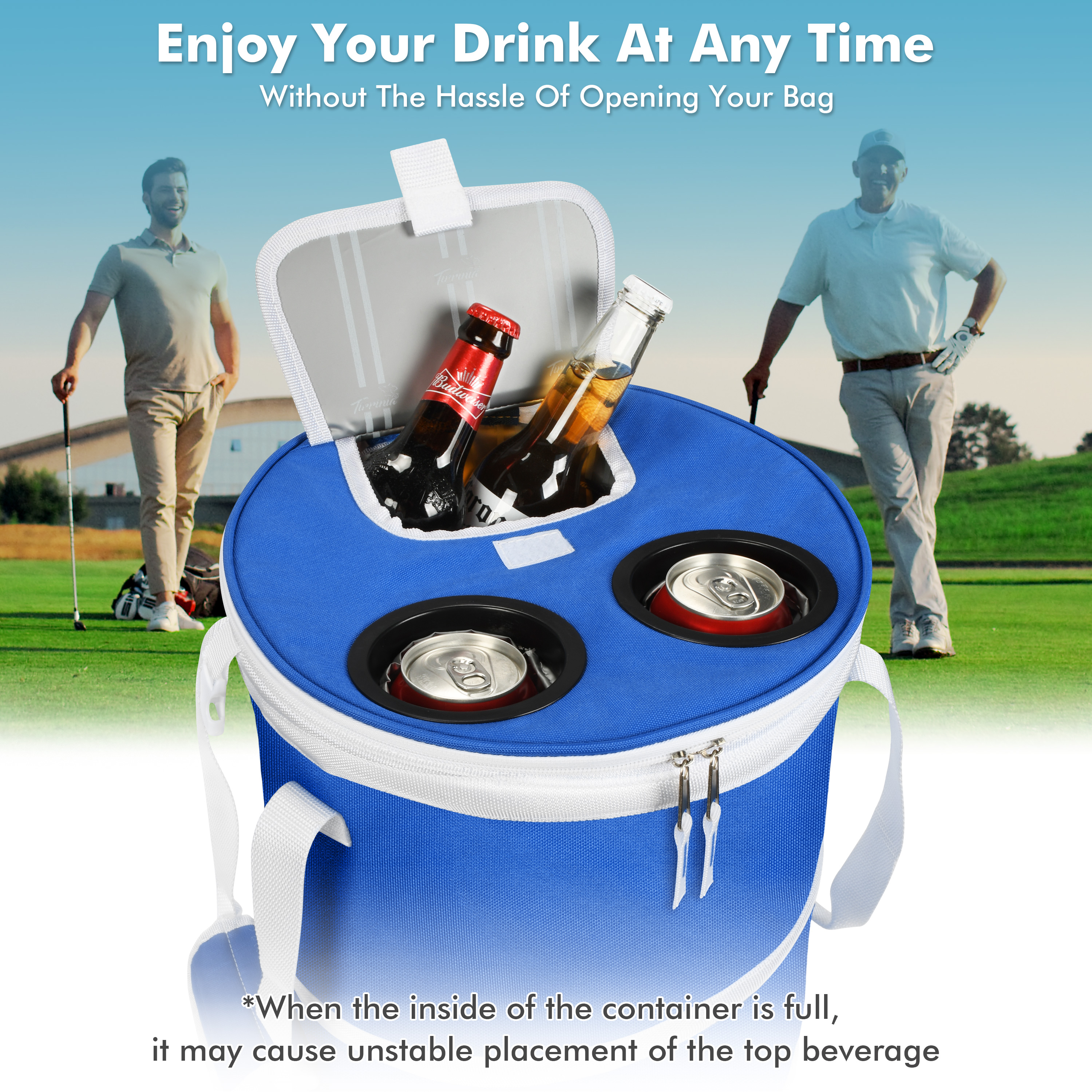 Convenient Access: This pop-up cooler bag features a convenient hatch for quick drink access without fully unzipping the cooler. Whether you're on the golf course or enjoying outdoor activities, it helps minimize cold air loss, keeping your drinks colder for longer. The perfect round cooler or collapsible cooler, it delivers extended cooling performance, making it an essential choice for collapsible coolers for travel.