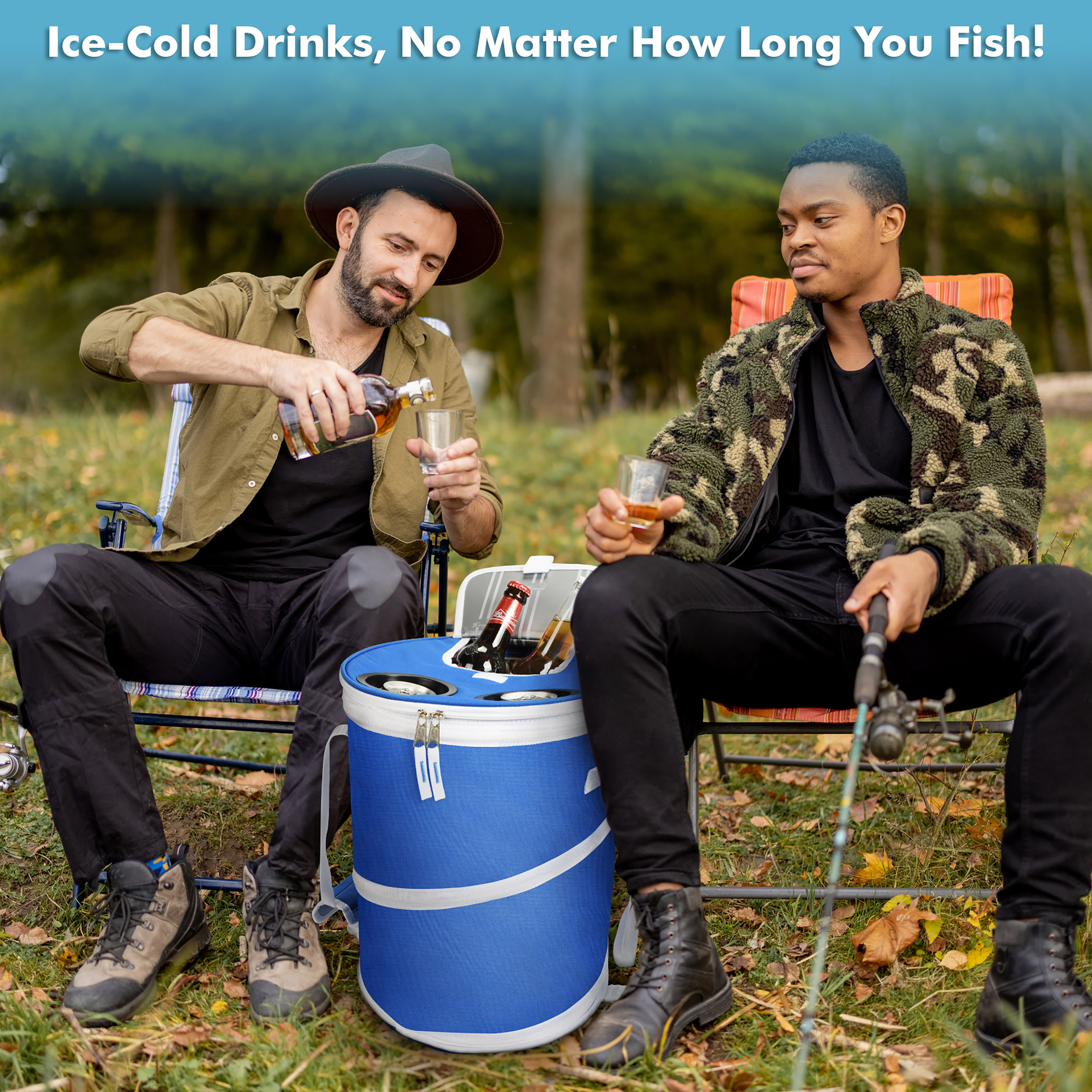 The Tirrinia Pop-Up Collapsible Cooler is the ultimate portable cooler for outdoor enthusiasts. Featuring a spring-loaded frame, this collapsible cooler holds its shape when in use and easily folds down to just 4 inches for convenient storage. It’s perfect for golf bags, cars, or travel luggage, making it the ideal solution for all your adventures. Whether you're at a golf tournament, backyard BBQ, fishing trip, or beach day, this collapsible cooler bag insulated keeps your drinks refreshingly cold for hours. The round cooler design ensures easy portability, while the built-in cup holders keep your drinks safe and prevent spills. With a durable, leakproof liner, this cooler bag maintains your ice and beverages securely, even in light rain. Its space-saving, flat design makes it perfect for collapsible coolers for travel. Whether for fishing, hiking, or camping, this pop-up cooler is the perfect gift for men who love the outdoors, ensuring your drinks stay cold and your snacks stay fresh.