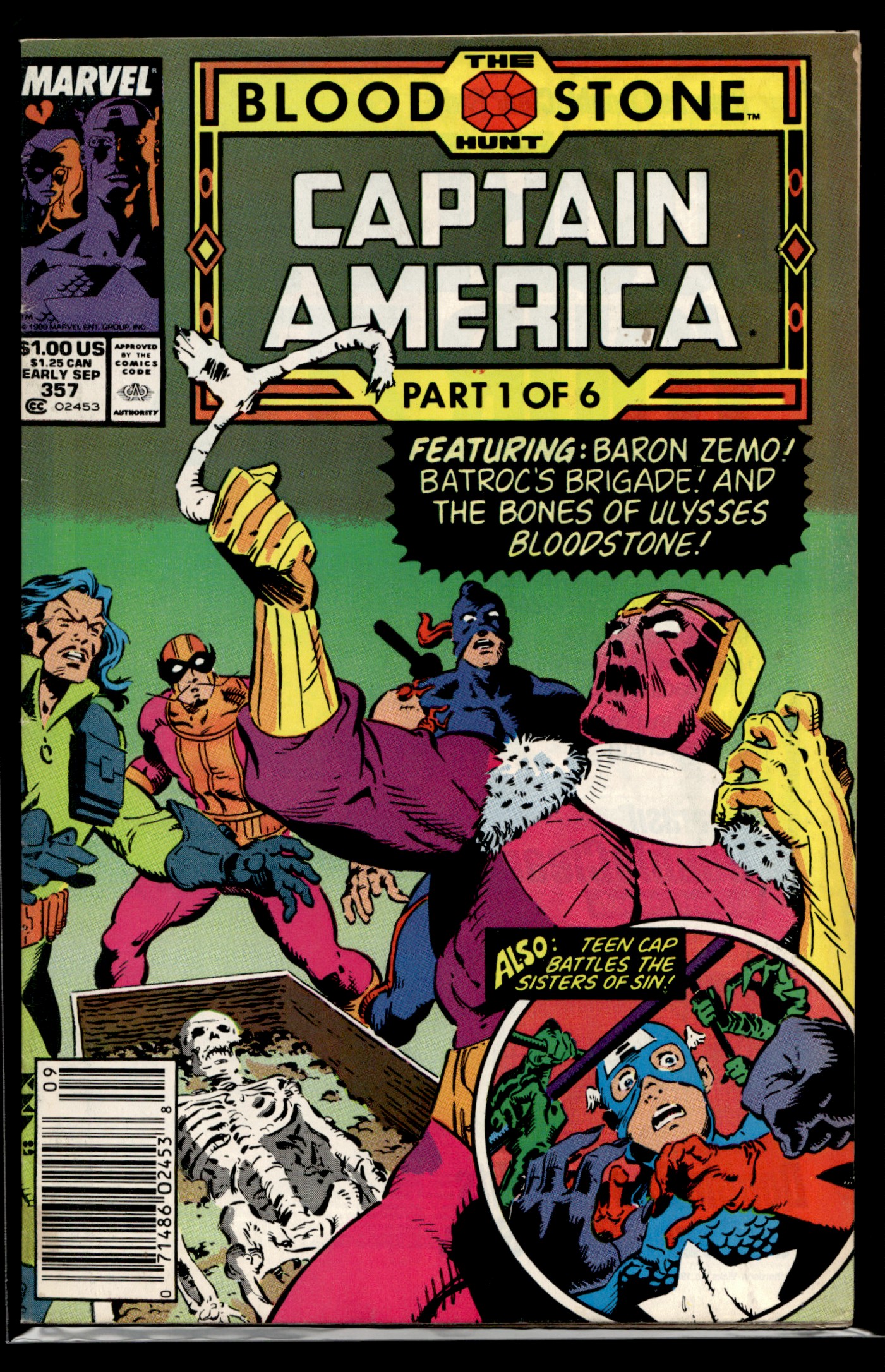 | 1989 Captain America #357 Newsstand B Marvel Comic |
