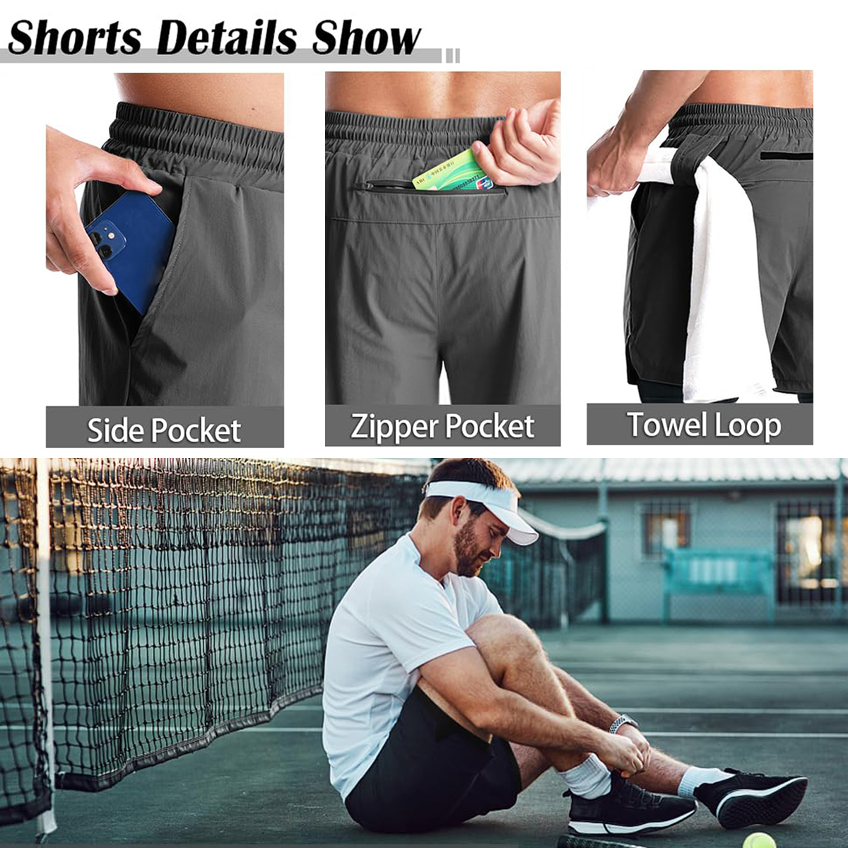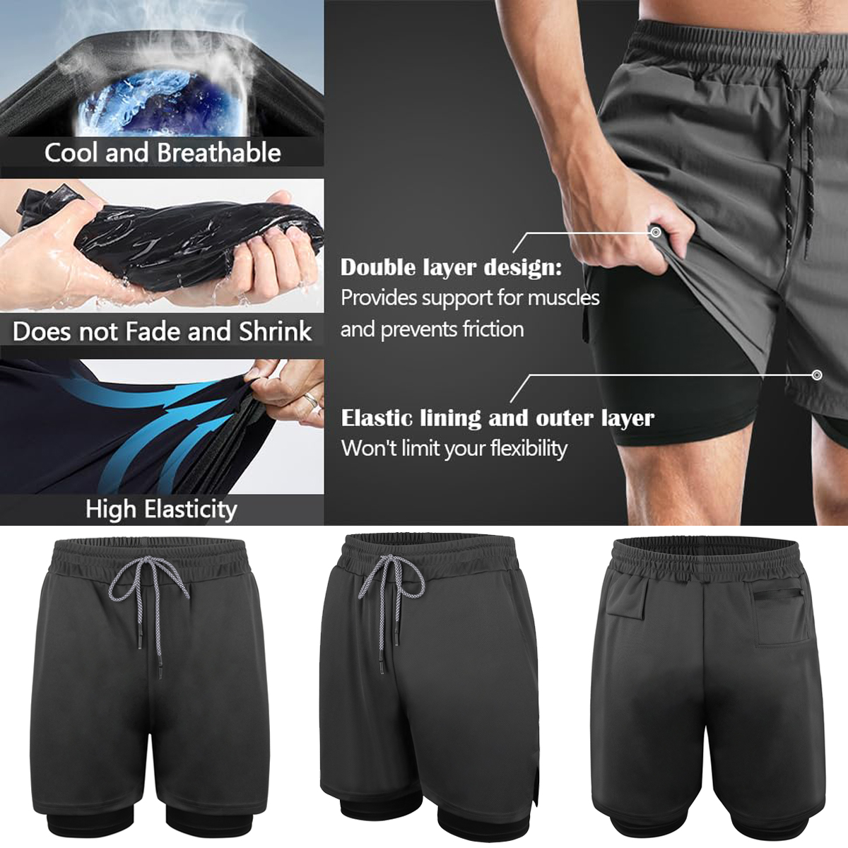【Lightweight and Breathable】Our 2 in 1 gym shorts are crafted from lightweight, breathable material. This ensures maximum airflow, keeping you cool and comfortable in any weather. The quick-dry technology also prevents sweat from building up, ensuring you stay dry and fresh throughout the day.