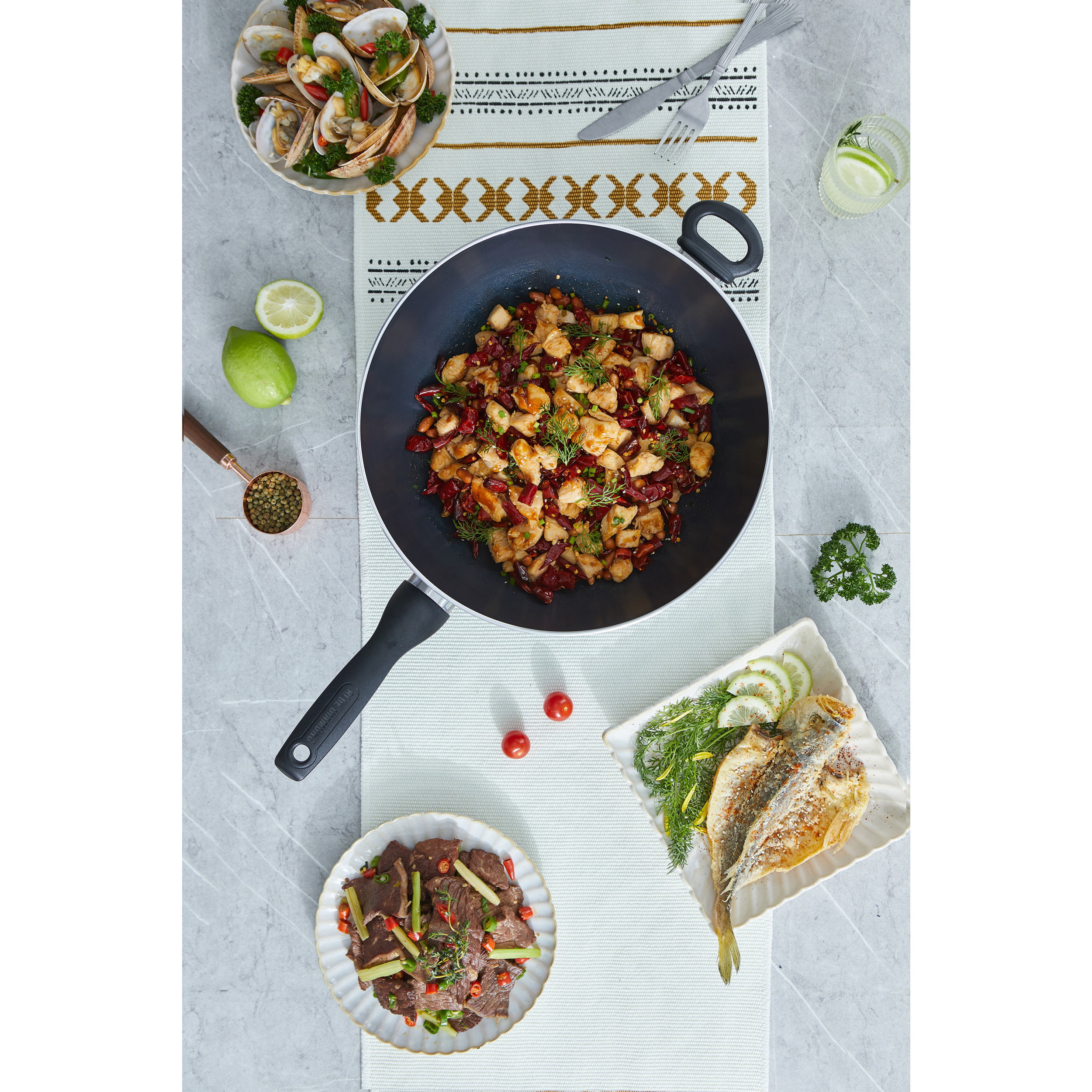 Crafted from durable forged aluminium, this 32 cm wok ensures even heating for perfect results every time. The ceramic non-stick coating makes food slide off with ease and clean up a breeze. A tempered glass lid locks in moisture and nutrients, preserving flavour and texture. Plus, it’s oven safe, making it ideal for seamless transitions from stovetop to oven. Whether you're stir-frying, sautéing, or searing, this wok has you covered for every culinary adventure!