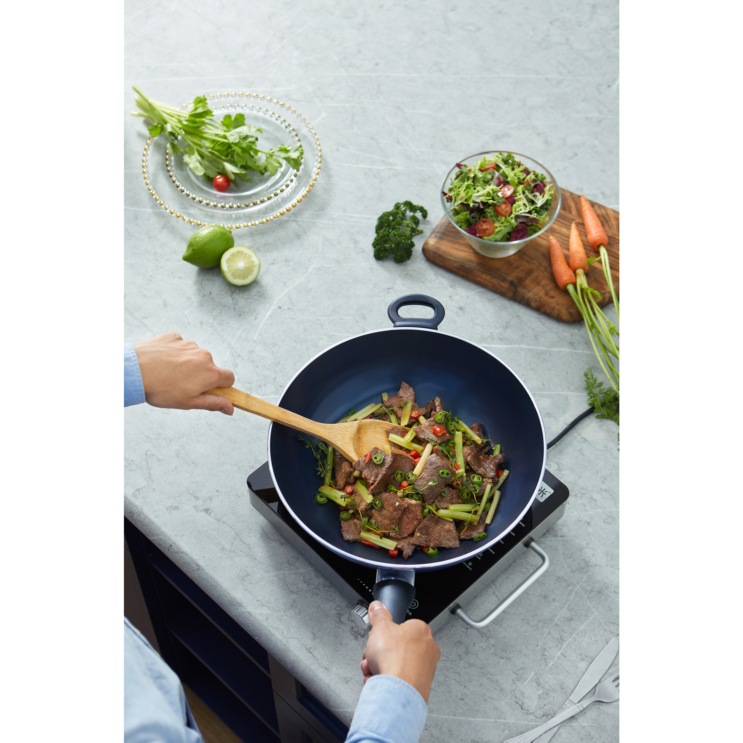 Equipped with a tempered glass lid, this wok effectively traps moisture during cooking, preserving flavour and nutrients.