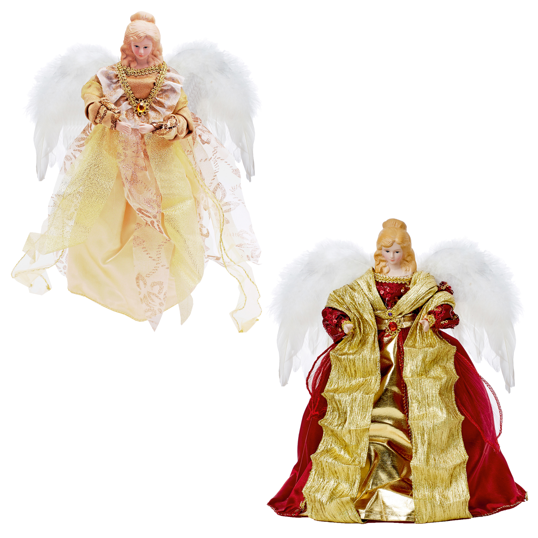 - Elevate your holiday décor with this exquisite Christmas angel figurine, designed to grace the top of your tree with elegance and charm.