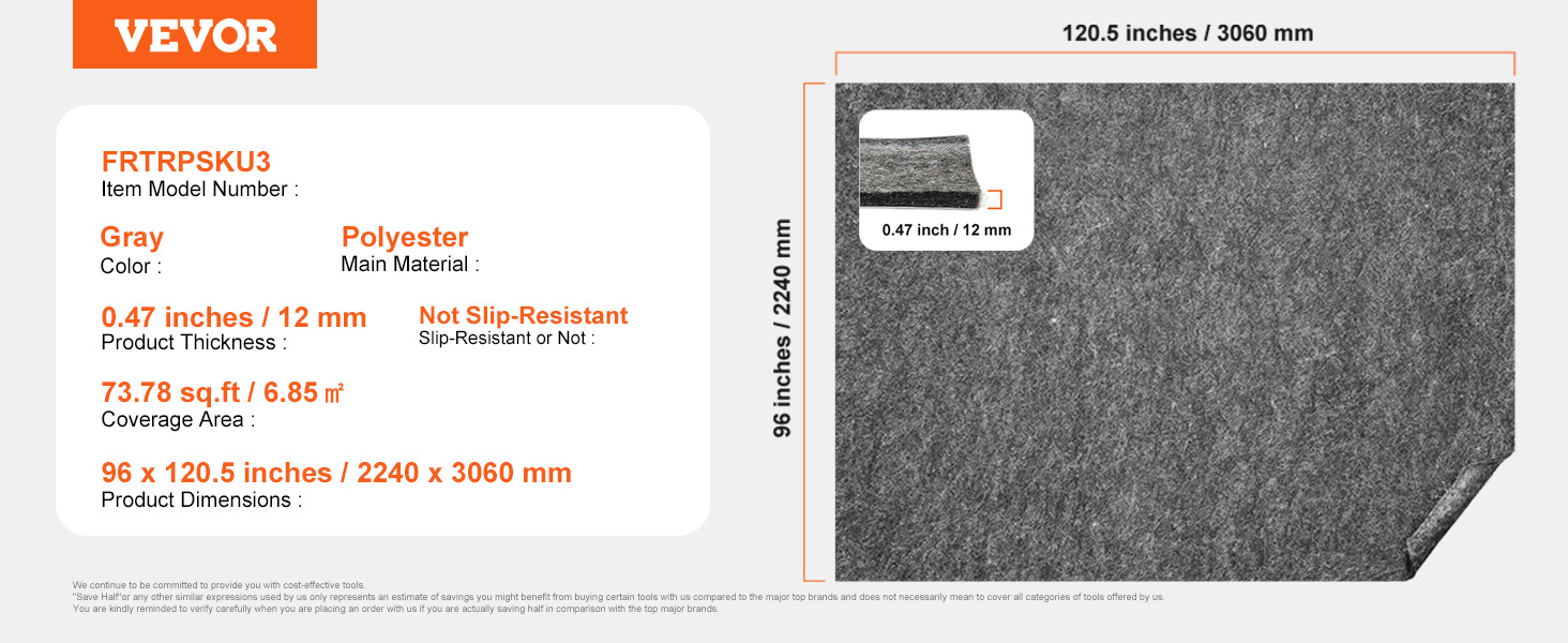 Thick and Comfortable: This carpet pad features a thickness of 0.47'' (12mm), providing excellent cushioning and shock absorption to protect your floors from damage. The ultra-long, dense pile offers an ultimate soft and resilient experience.