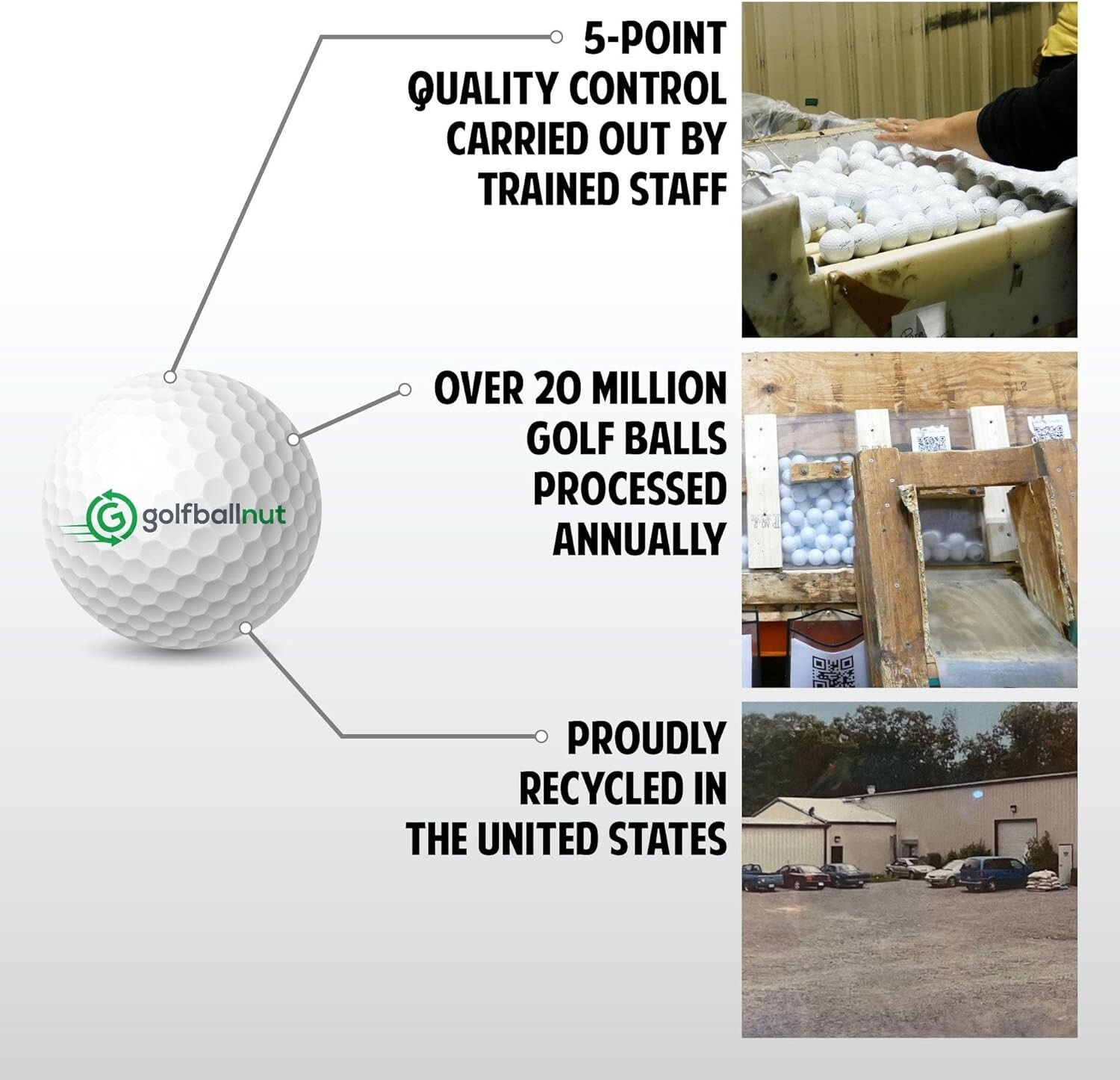 - Sustainable Golf That Saves You More – Recycled in the USA, these recycled & used golf balls help reduce waste & give golfers a sustainable, cost-effective alternative to new balls.