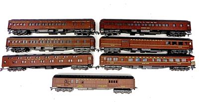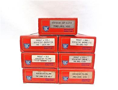 This listing is for a set of 7 IHC (Rivarossi molds) Pennsylvania Railroad passenger cars in Tuscan Red. This is a very handsome set of cars. They are old new stock in excellent condition.