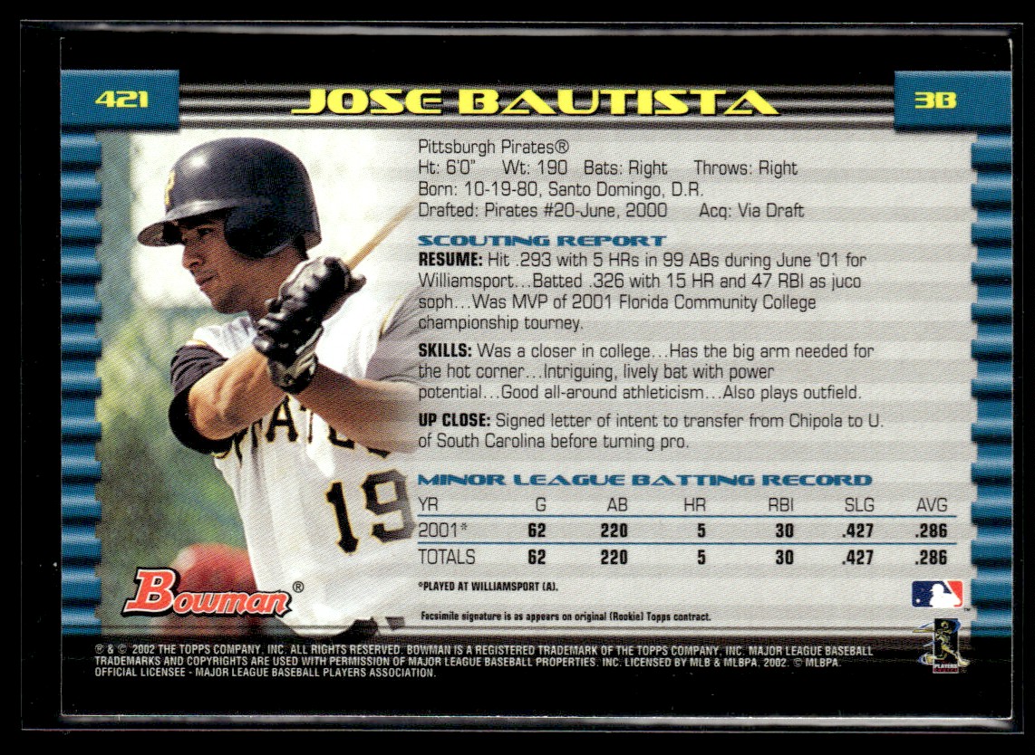 | 2002 Bowman Jose Bautista RC Pittsburgh Pirates #421 |