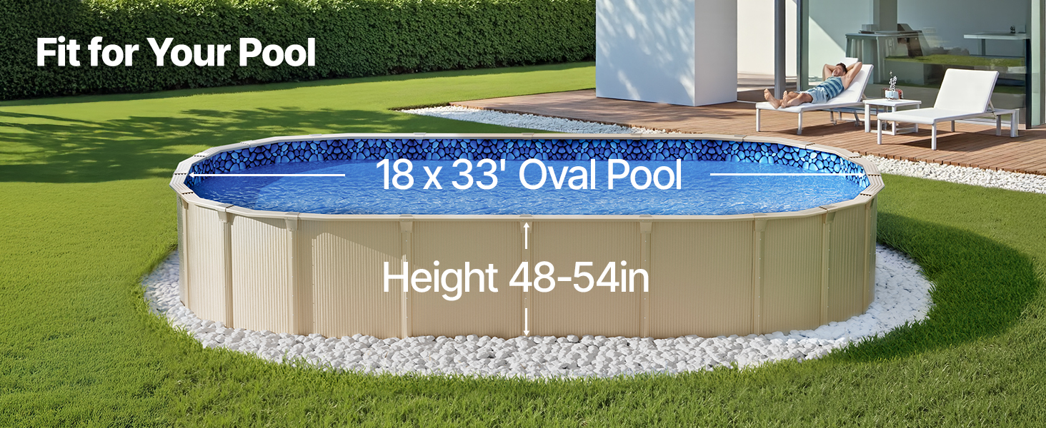 - Fit for 18 x 33 ft Pools: This pool liner is specifically designed for 18 x 33 ft above-goval pools with a flat bottom and wall height up to 54 inches, ensuring a seamless and secure fit.