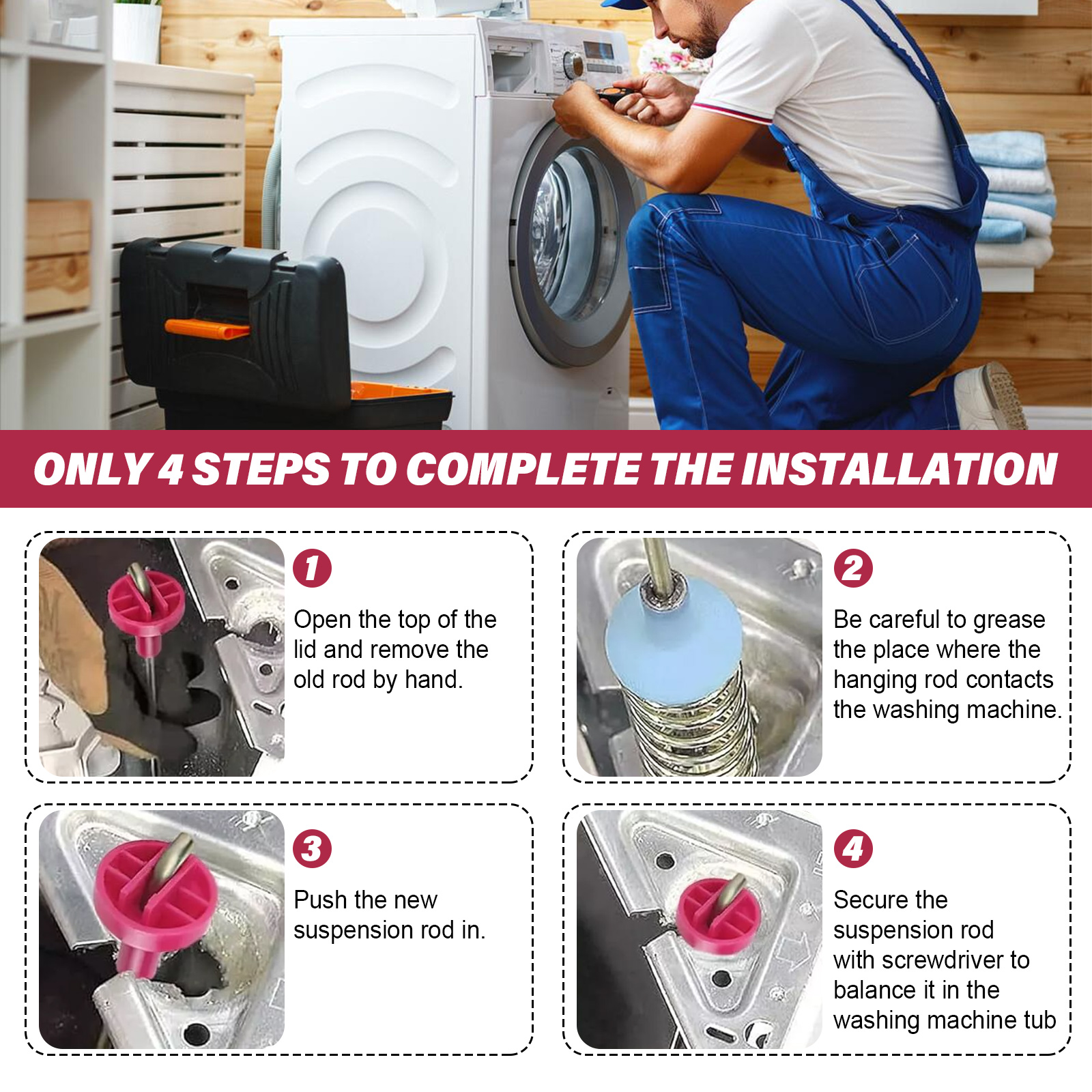 4X Washer Suspension Rods DC97-16350V For Samsung Washer WA54R7200AV WA54R7200AW