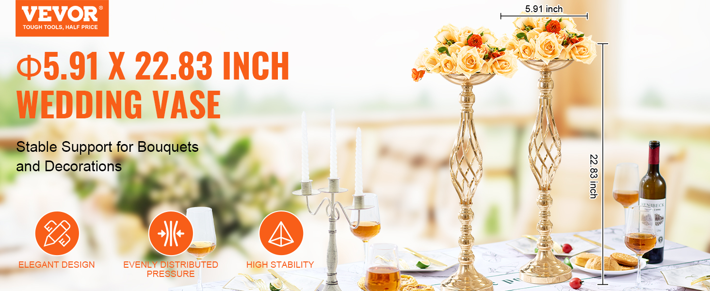 Elegant Design: This wedding vase features a classic candlestick design, offering a simple yet elegant appearance. It ensures even weight distribution for enhanced stability, allowing you to place multiple decorations without worrying about wobbling or falling.