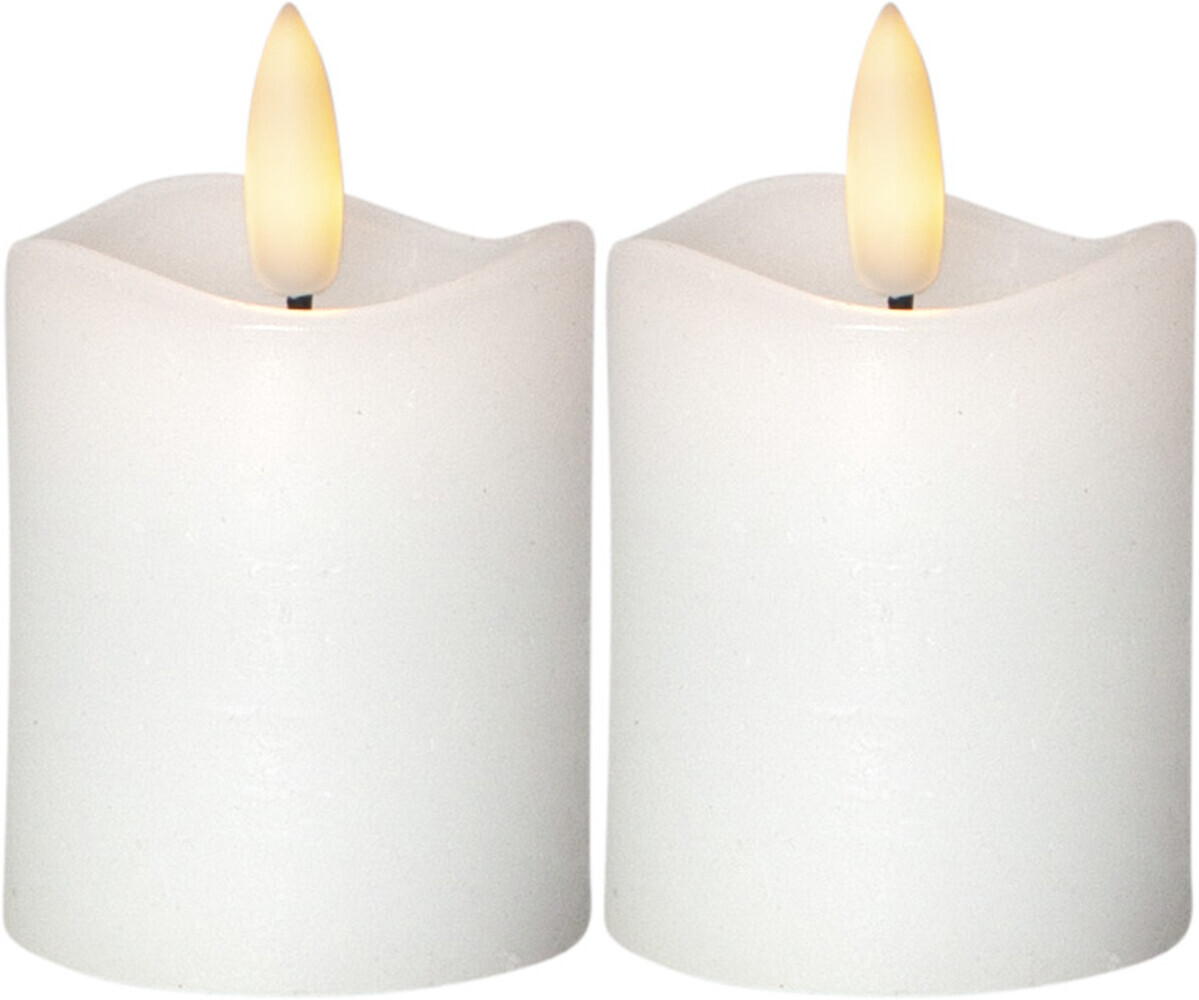 Sofort Kauf STAR "flamme" LED Stumpen Echtwachs Kerze kurz 2er Set weiß flammenlos flackernd