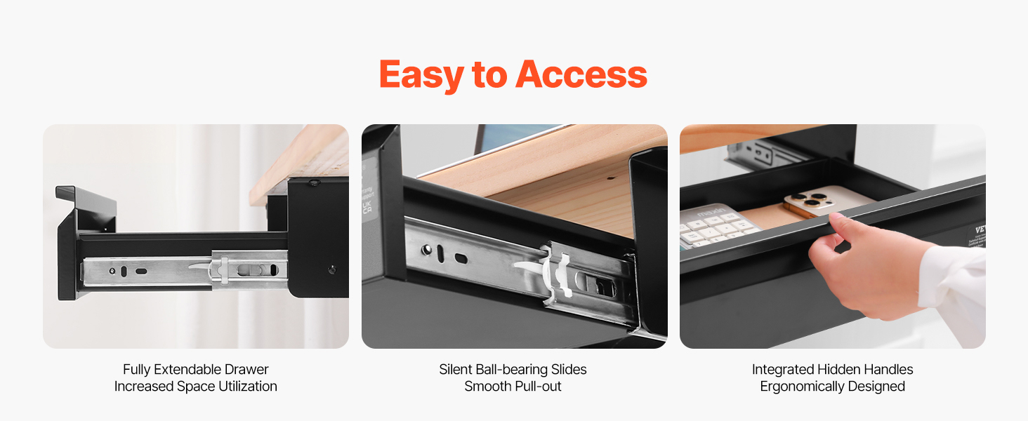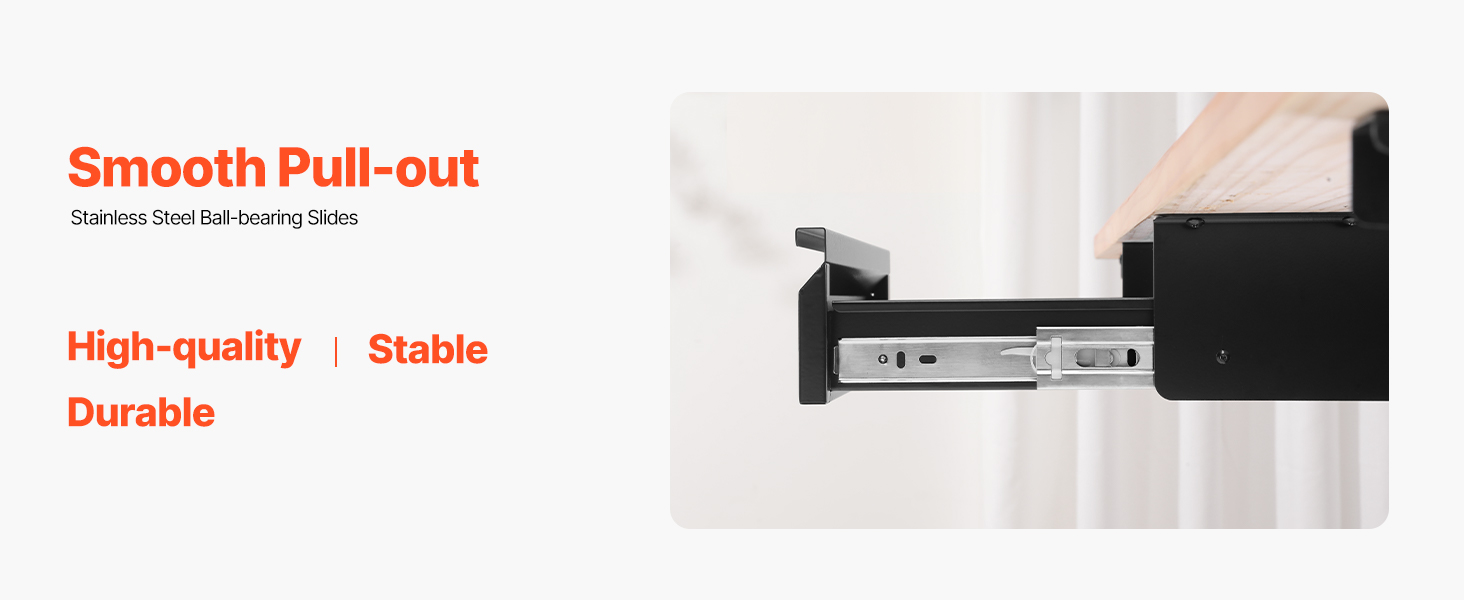- Smooth & Silent Sliding: Pull the hidden handle and enjoy the smooth glide of this under table drawer. Equipped with two high-quality stainless steel ball-bearing tracks, it opens quietly and effortlessly, without any jerking or annoying noise. Fully extendable, this drawer makes accessing your items a breeze.