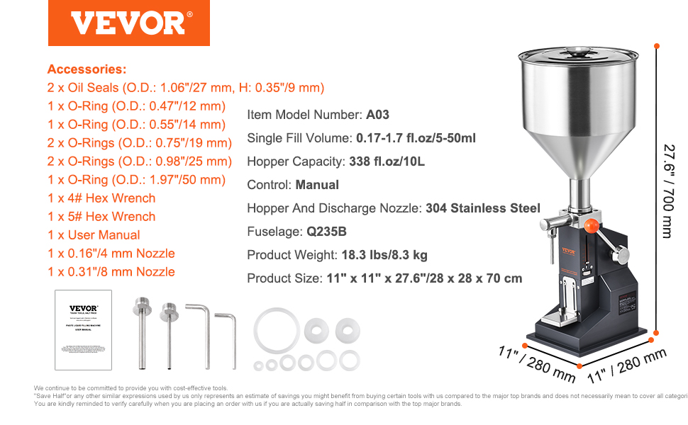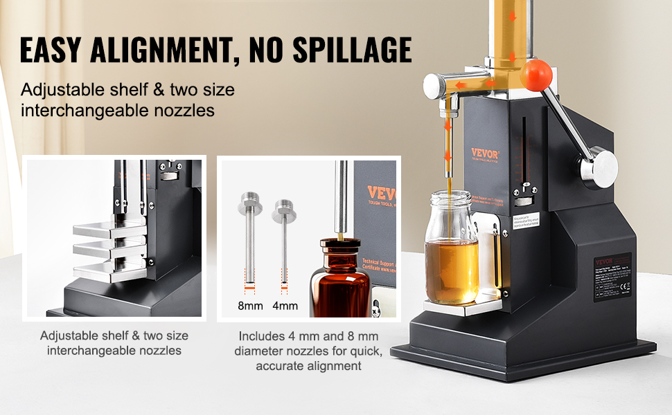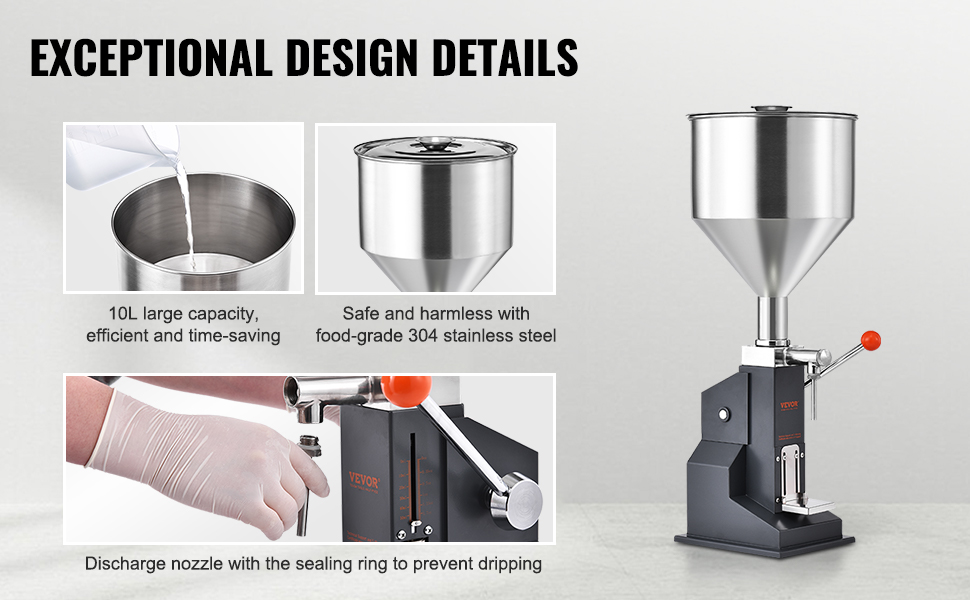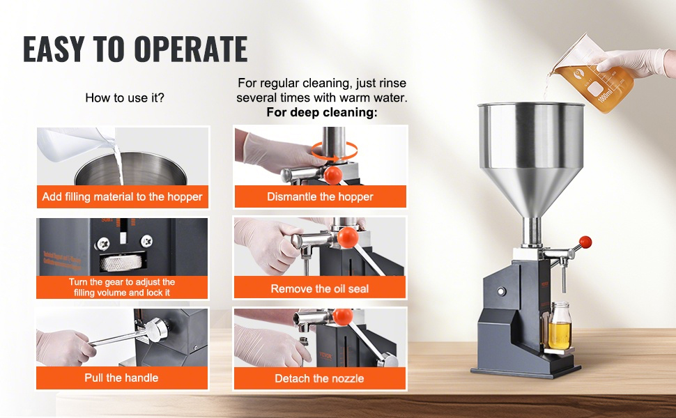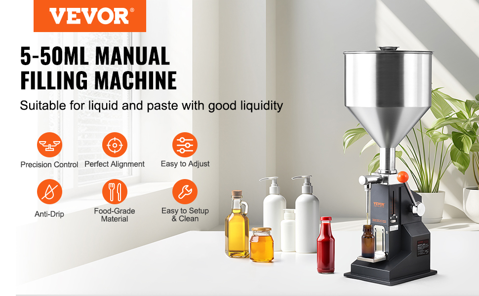 This manual filling machine is perfect for honey, oil, essence, and more. The handle's upgraded with a smart spring for smooth, effortless filling. Just press down, and you're good to go! Crafted from food-grade materials for security, it is ideal for homes and workshops.