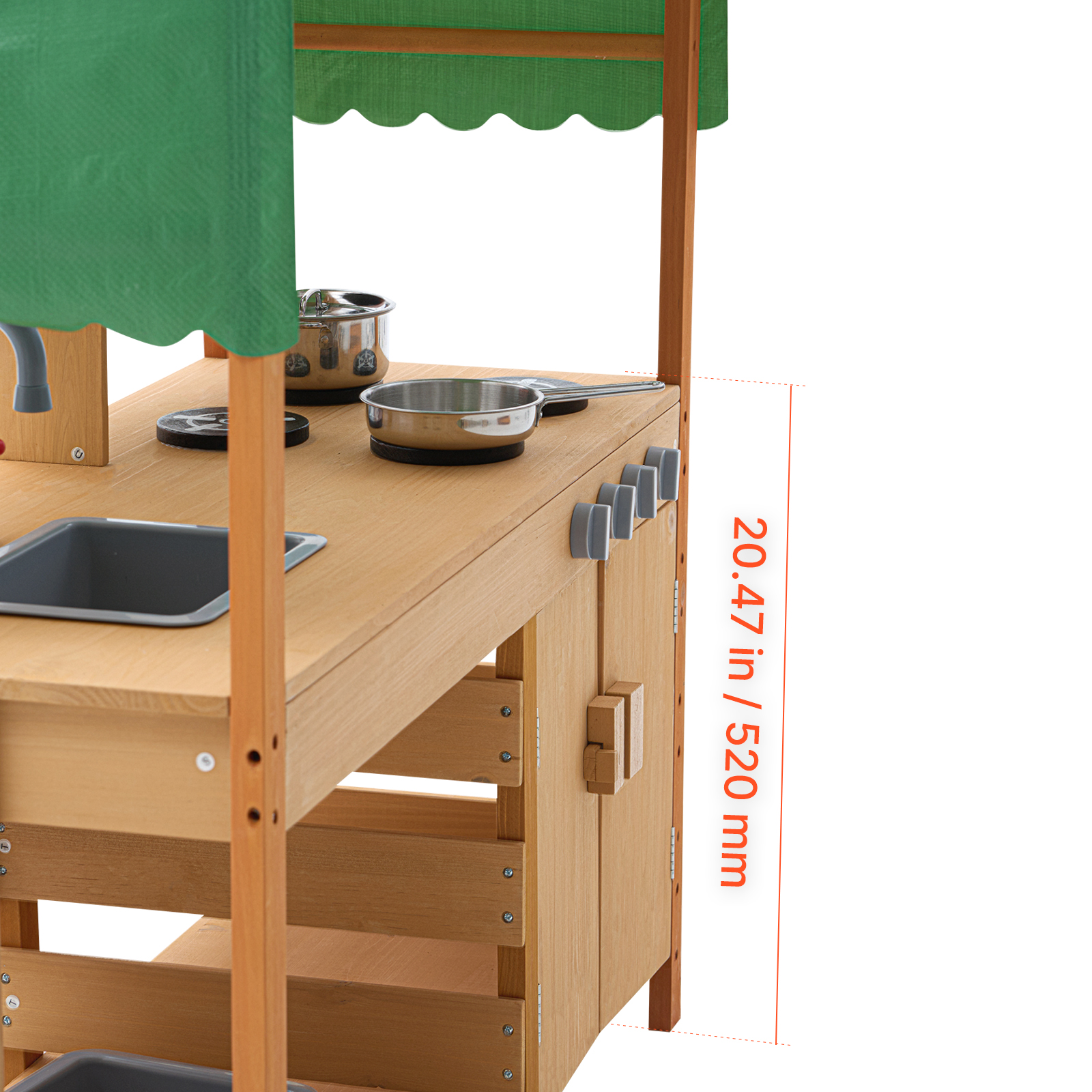 - Cool Play Space: This mud kitchen features a striped canopy on top, giving it the look of an outdoor playhouse that will capture children's attention. The canopy provides shade, protecting kids from harsh sunlight when used outdoors and helping to prevent sunburn. Made from high-strength polyester material, it is highly durable, tear-resistant, and built to withstand long-term outdoor use without showing signs of wear