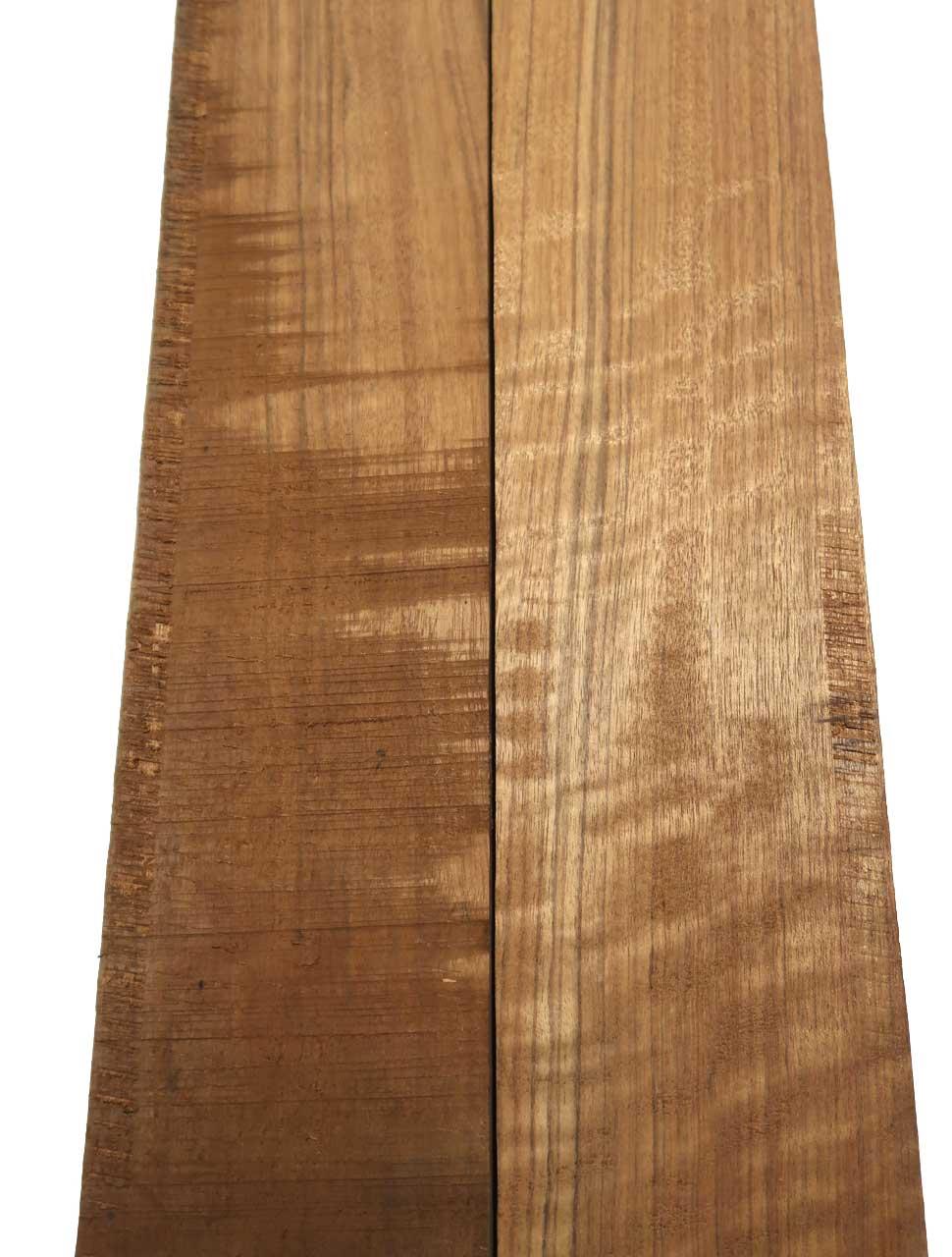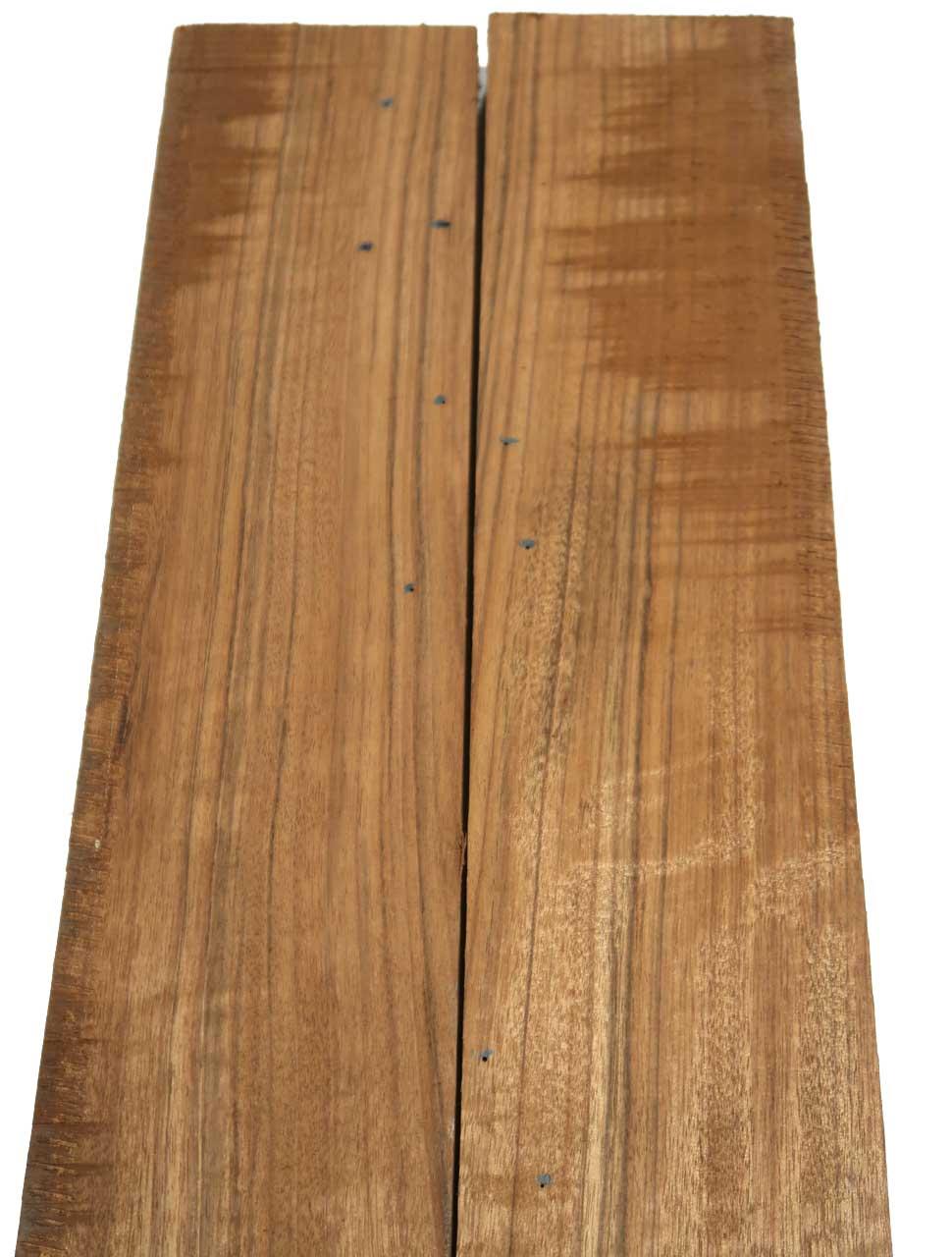 Hierbei handelt es sich um Holz von Mutenje-Amazakoue, auch Ovangkol genannt. Mutenje wird sehr oft als Palisander und Nussbaum Ersatz verwendet! Das stark glänzende Kernholz von Mutenje hat einen graugelben bis hellolivfarbenen Farbton, der mit zunehmender Trocknung olivbraun, fast Nussbaumähnlich, nachdunkelt. Effektvolle Glanzzonen und dunkelbraune bis schwarze Farbstreifen geben dem Holz einen eigenen Charakter.