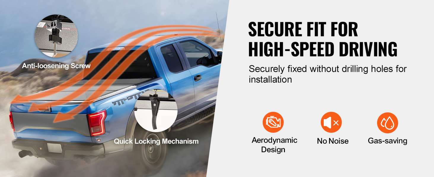 • Smooth High-Speed Driving: Designed with aerodynamics and lightweight materials, this truck tonneau cover reduces wind resistance, so you can hit the road without burning extra fuel. No rattling noises or bumps in the road – just smooth sailing ahead!