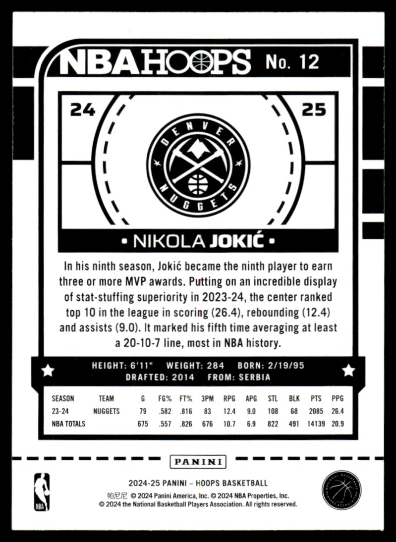 2024-25 Hoops Nikola Jokic Denver Nuggets #12