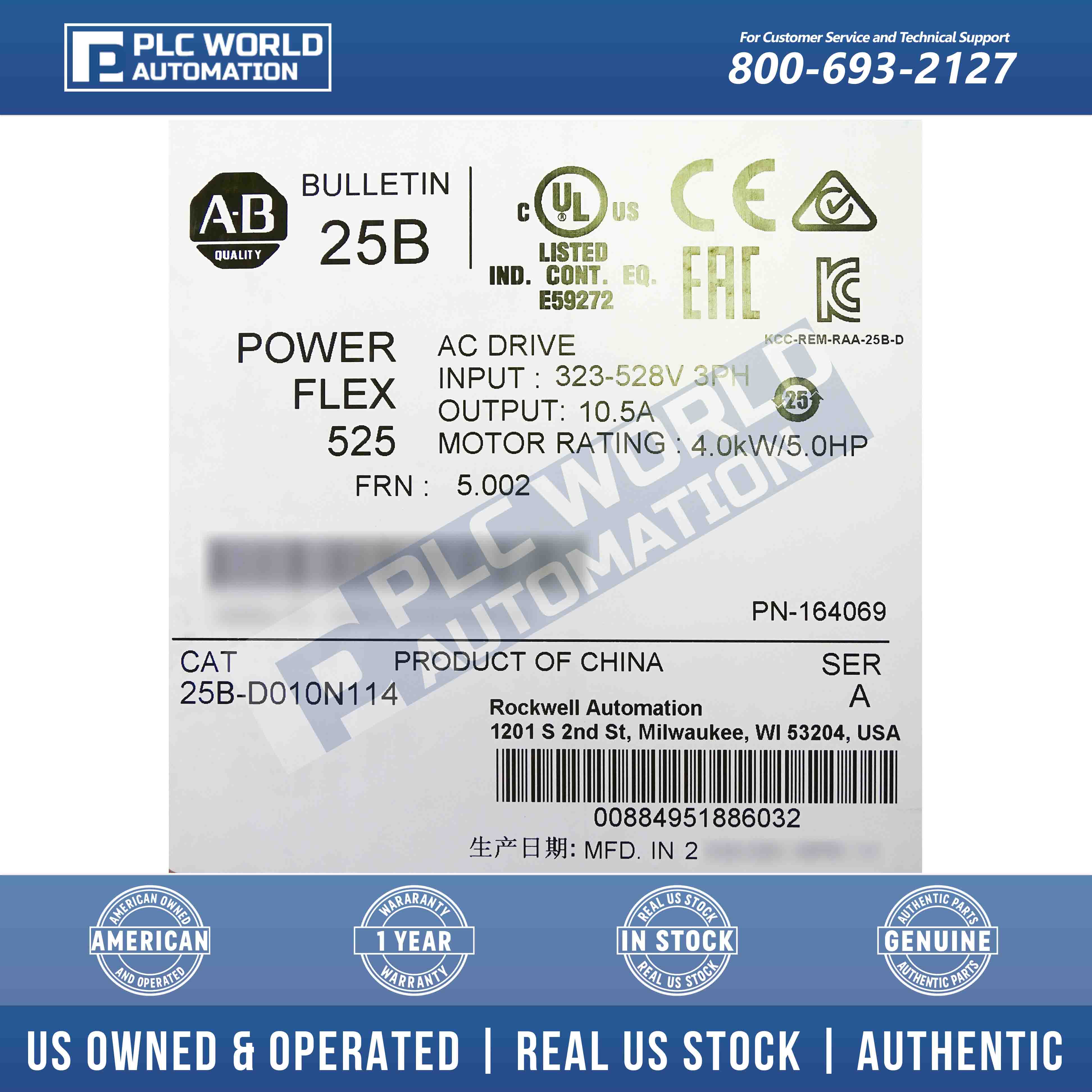 New Factory Sealed Allen Bradley 25B-D010N114 Series A PowerFlex 525 AC Drive 4kW 5Hp, with FREE UPS 2 Day Delivery & 2 Year Warranty