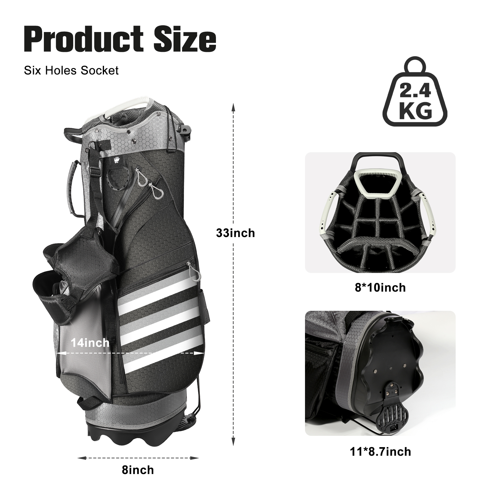 - Dimensions: 8” L x 33” H (fits all standard clubs)