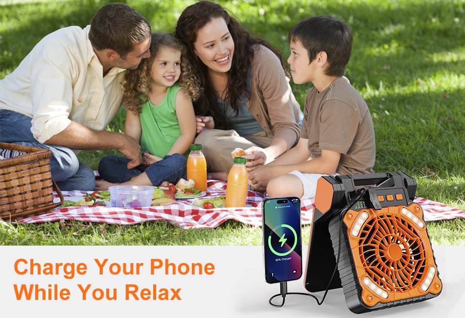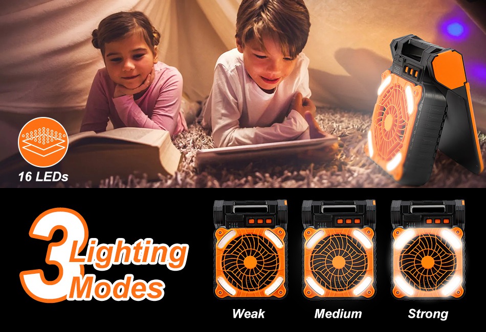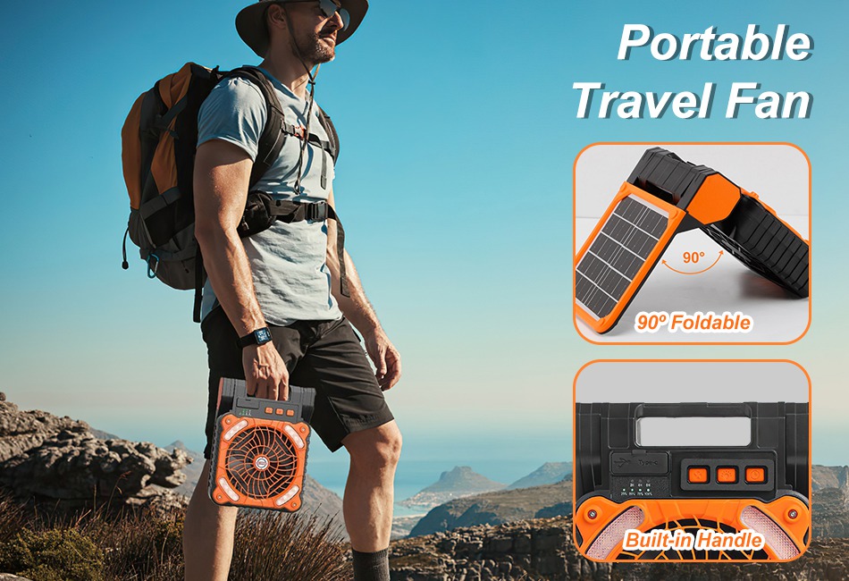 - 3 In 1 Camping Fan:This solar camping fan with lantern combines portable fan,LED light and emergency power bank in one unit,making it an ideal gear for home,camping,fishing,hiking,backpacking,emergencies,or other indoor & outdoor activities.