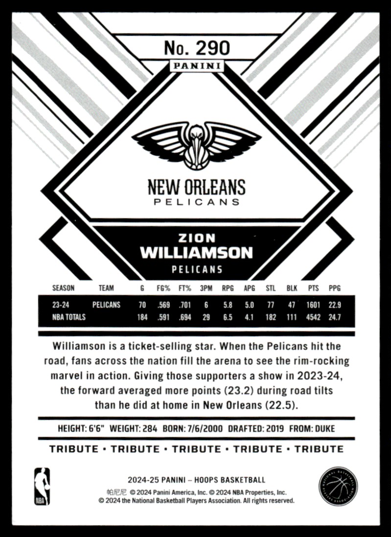 2024-25 Hoops Zion Williamson New Orleans Pelicans #290