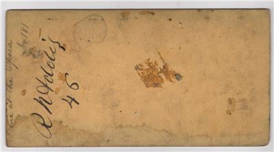 Interesting stereoview from a unique collection. It is clipped to fit an early metal viewer, and edges blacked out. Hand tinted. Remnant of tax stamp on back. From the collection of "RM Addis" (period ink and manuscript)