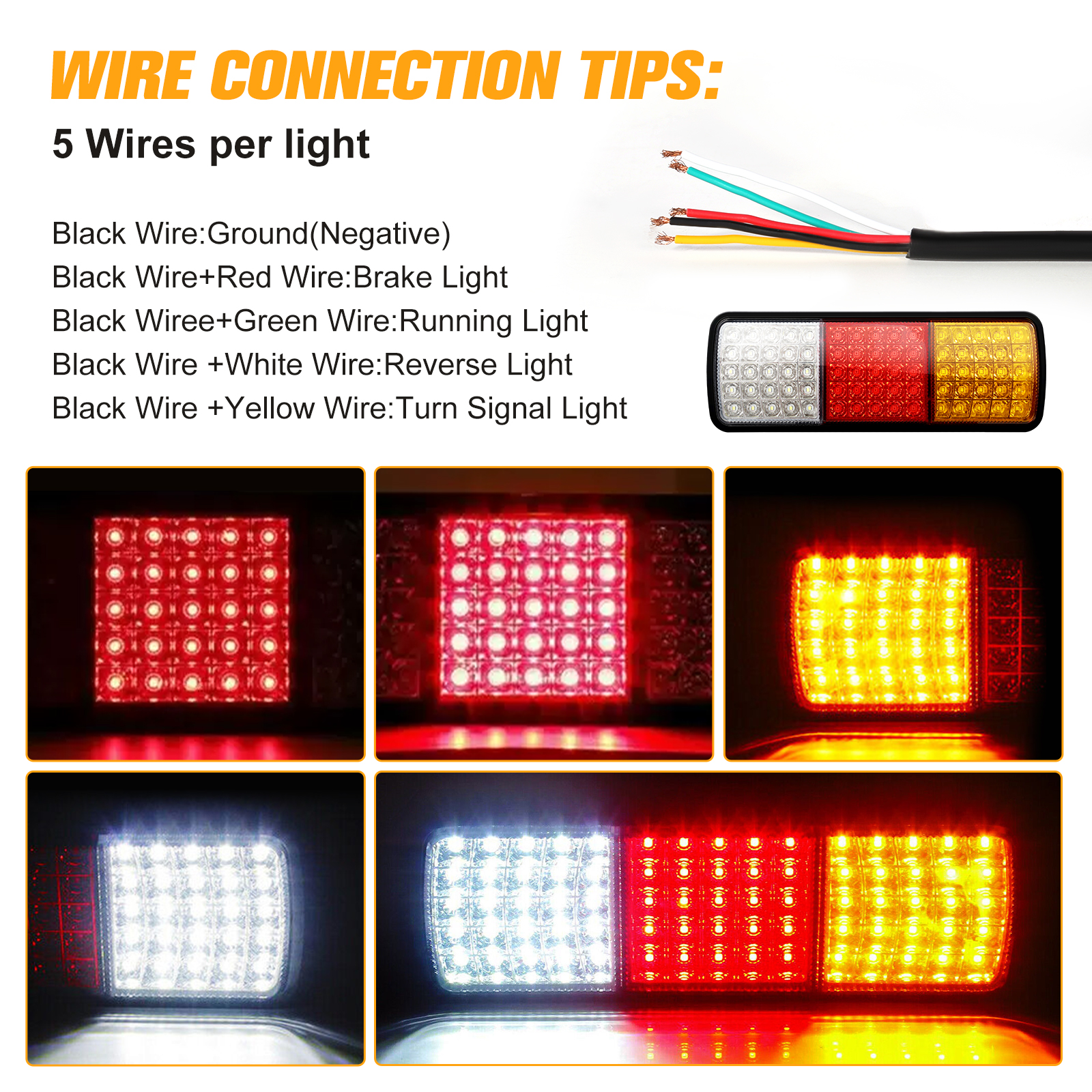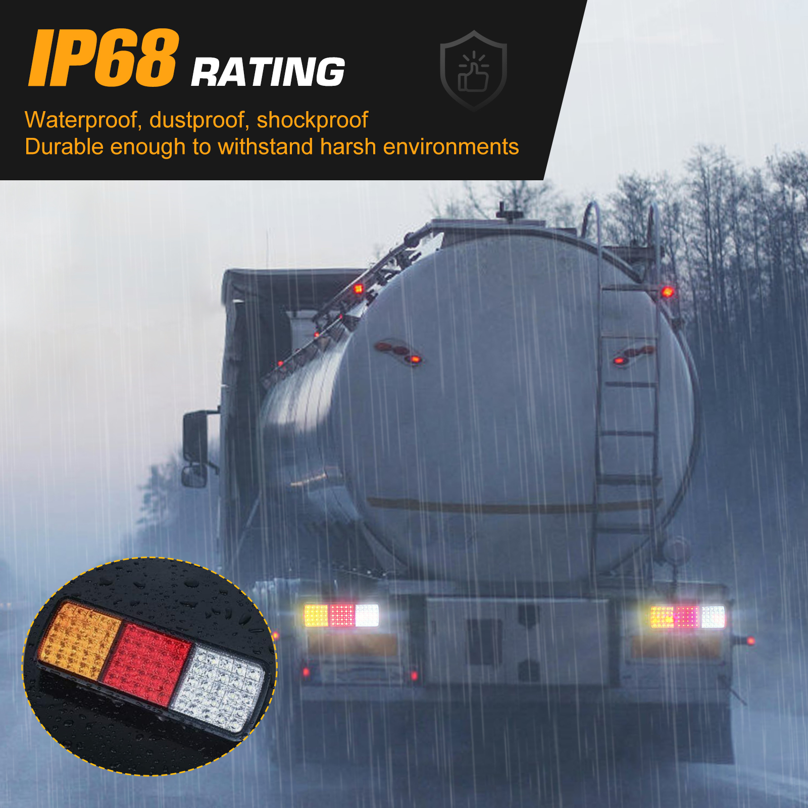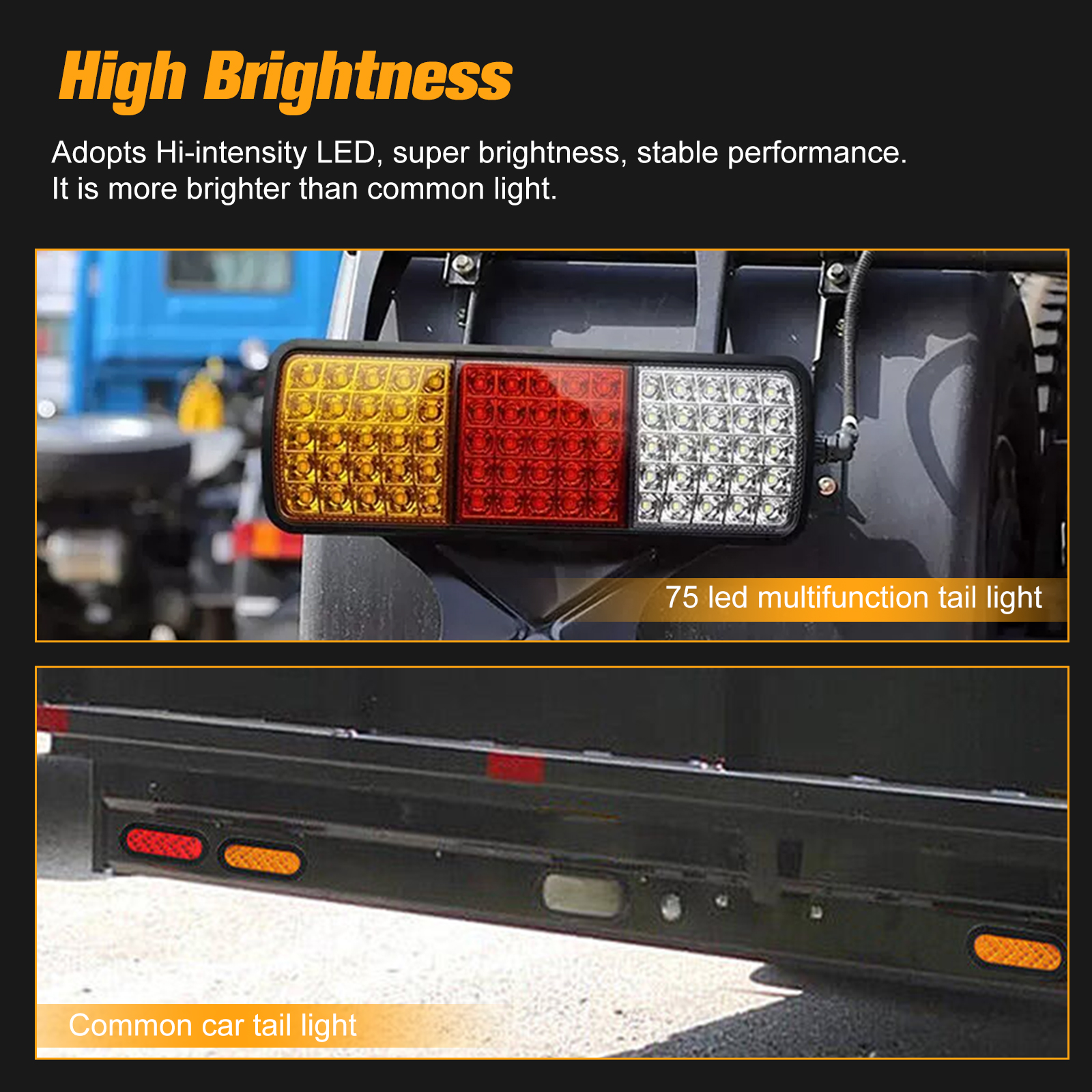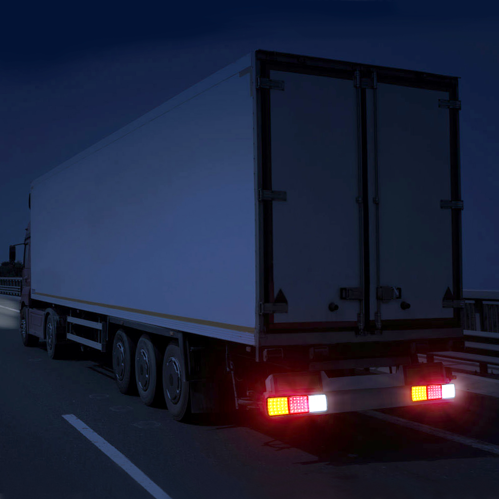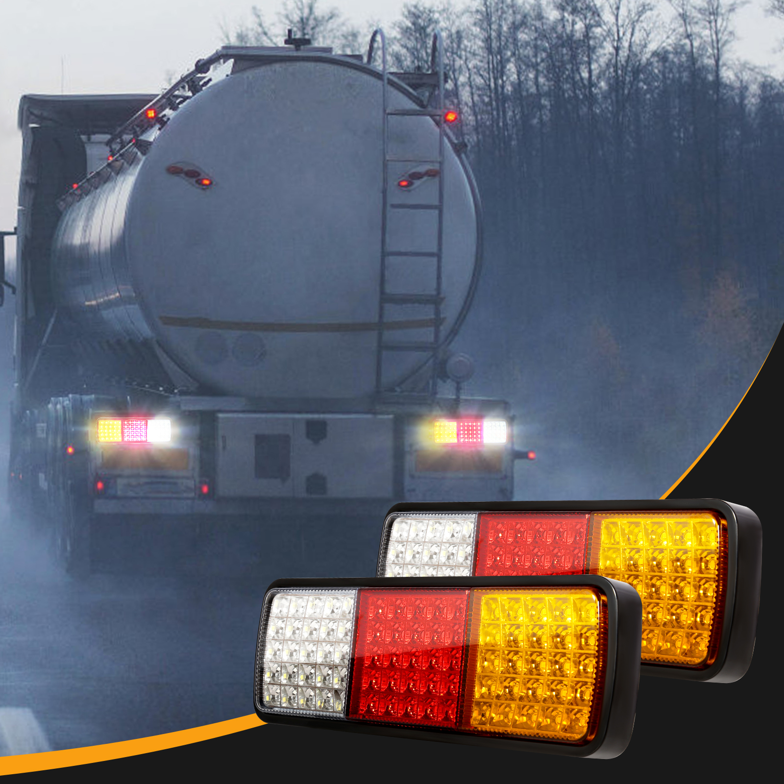 - LED Configuration: 25 Red (Position/Brake) + 25 Amber (Turn Signal) + 25 White (Reverse)