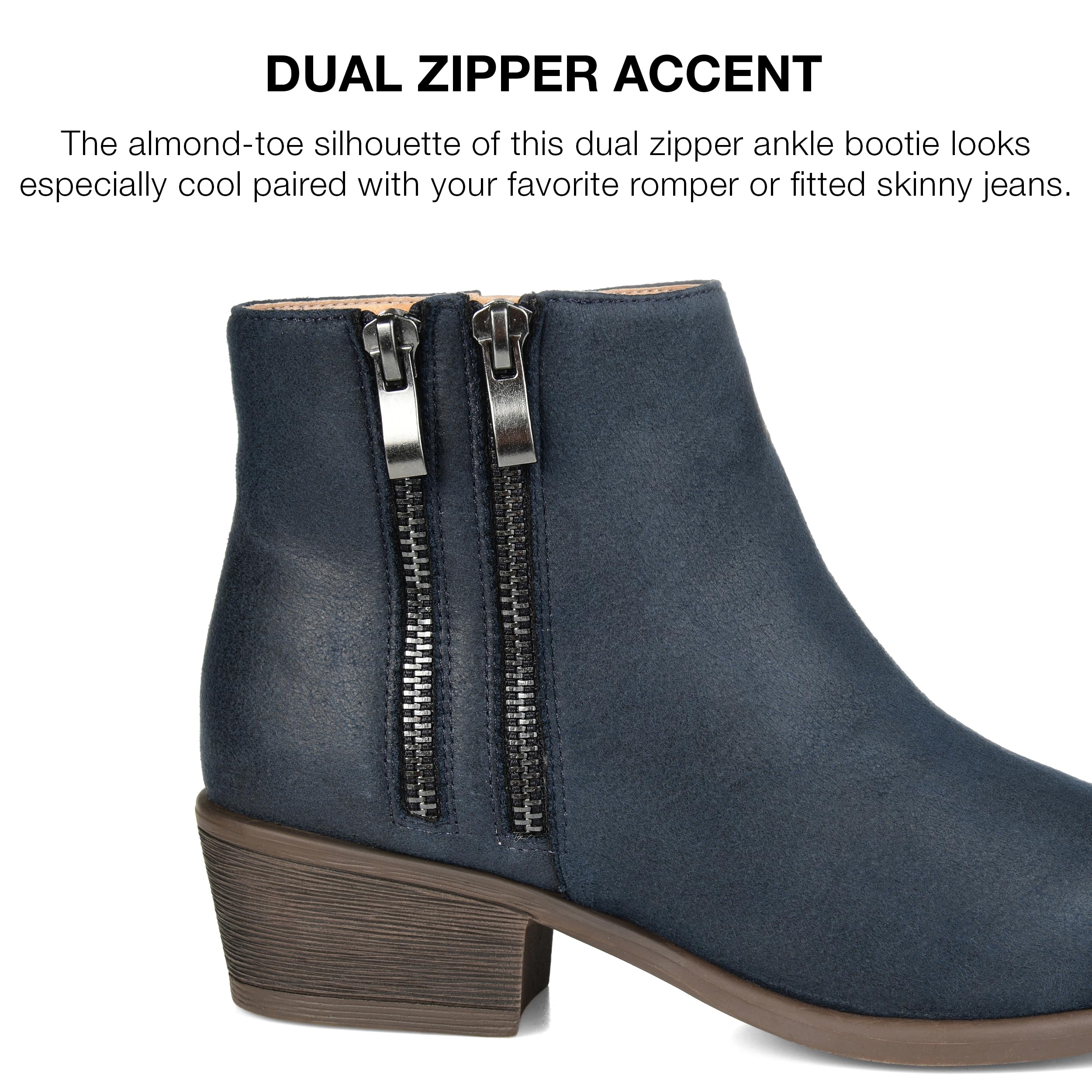 Journee Collection Womens Jayda Inside Zip Stacked Heel Booties - Navy - 7.5
