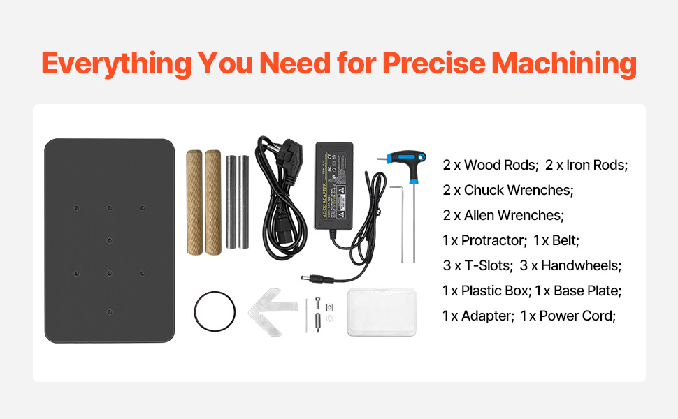 This mini lathe machine comes with a full set of practical accessories, so you can start working on your creative projects right out of the box!