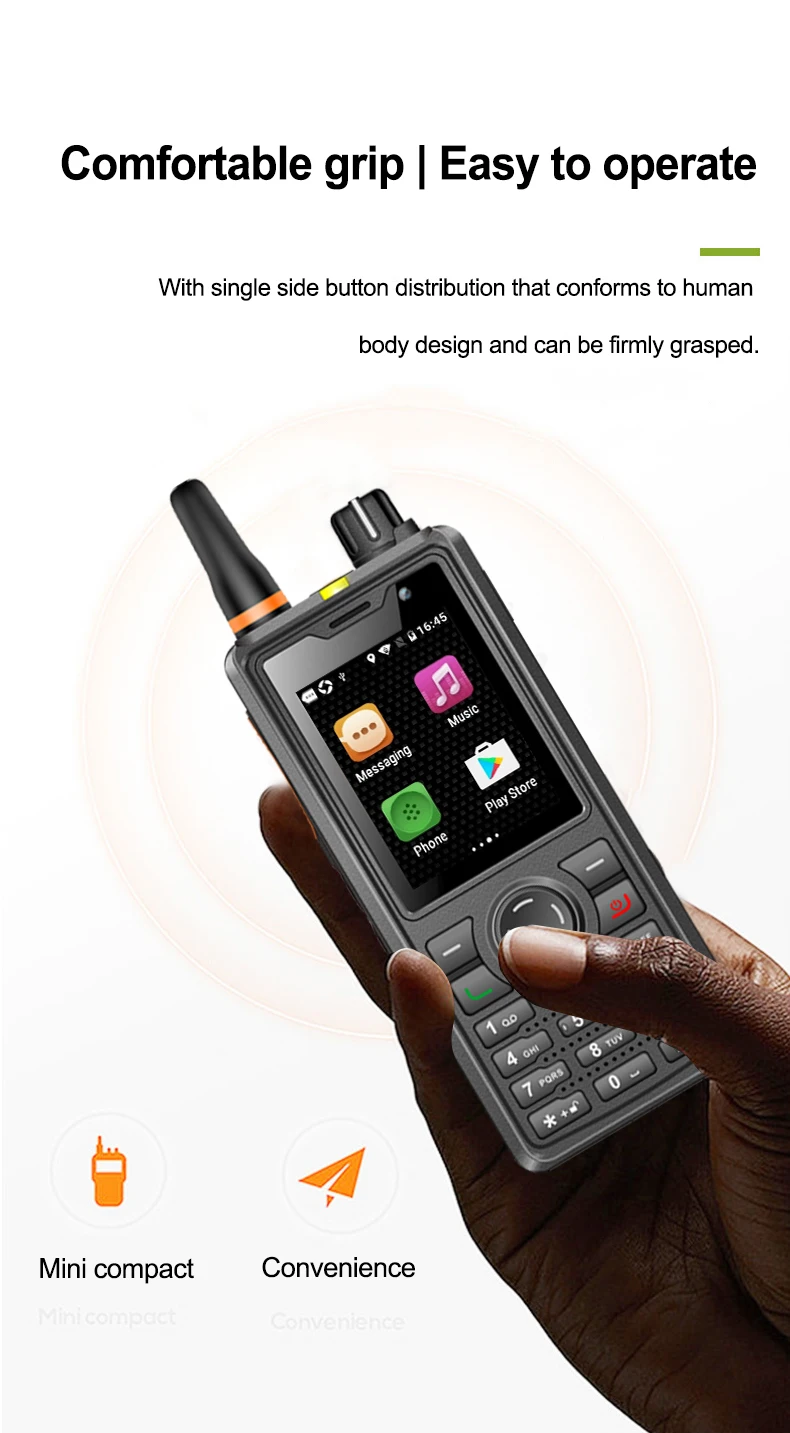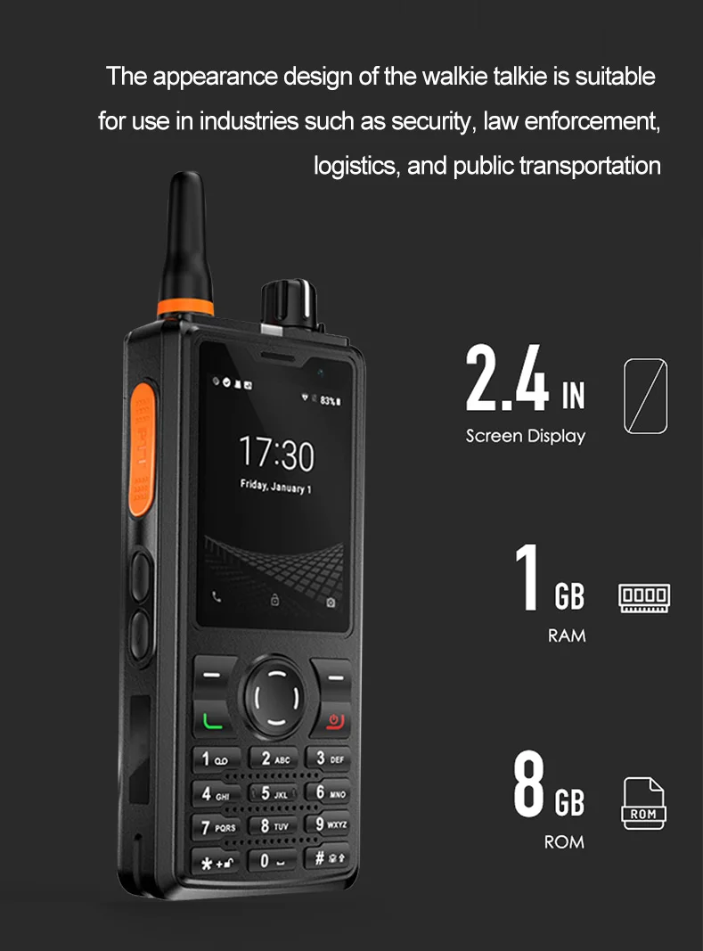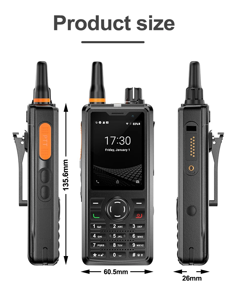 | Buttons | PTT*1, volume +/-, SOS button*1, custom buttons*1, T9 keypad |