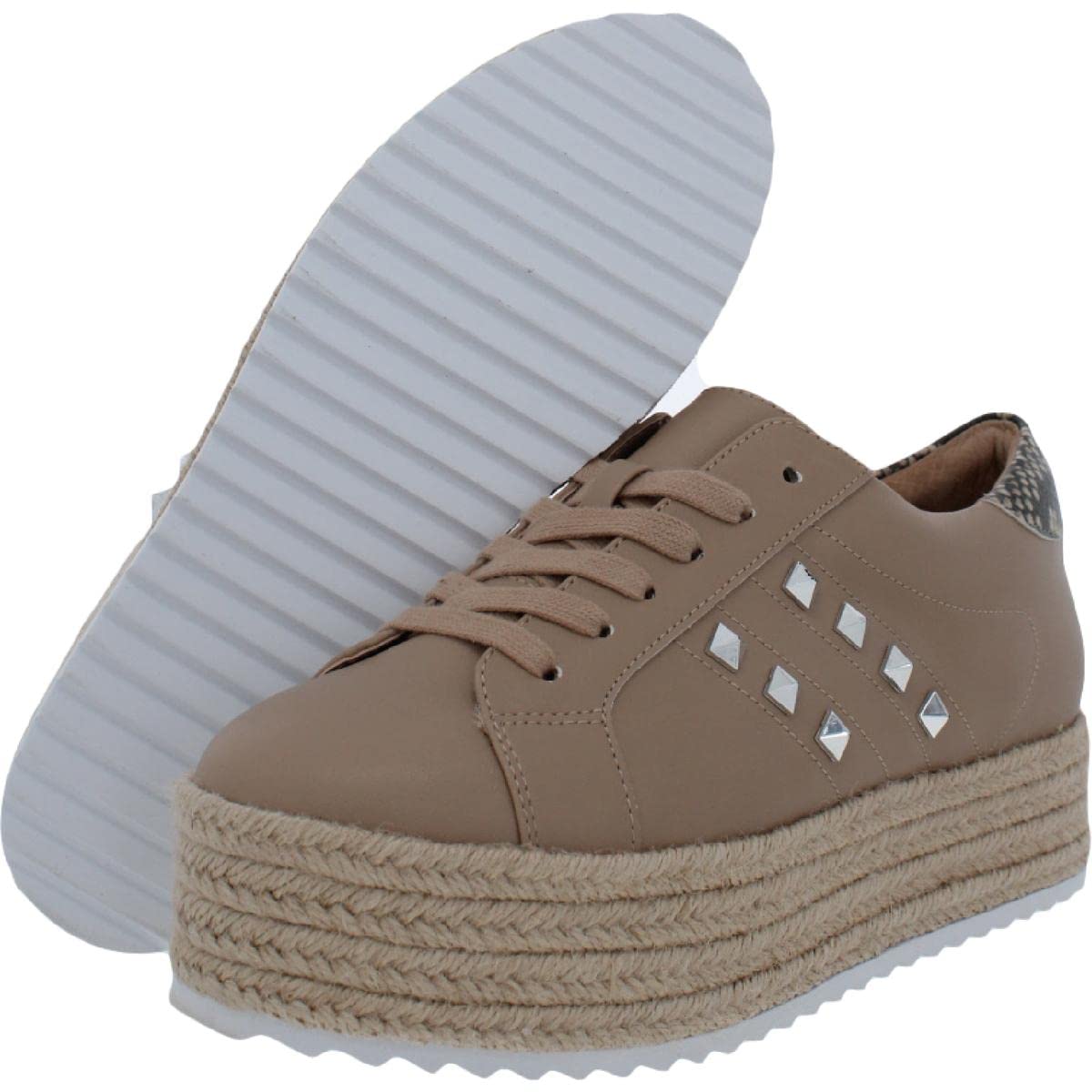 Steve Madden Womens Elodie Studded Flatforms Oxfords Tan 9.5 Medium (B,M)