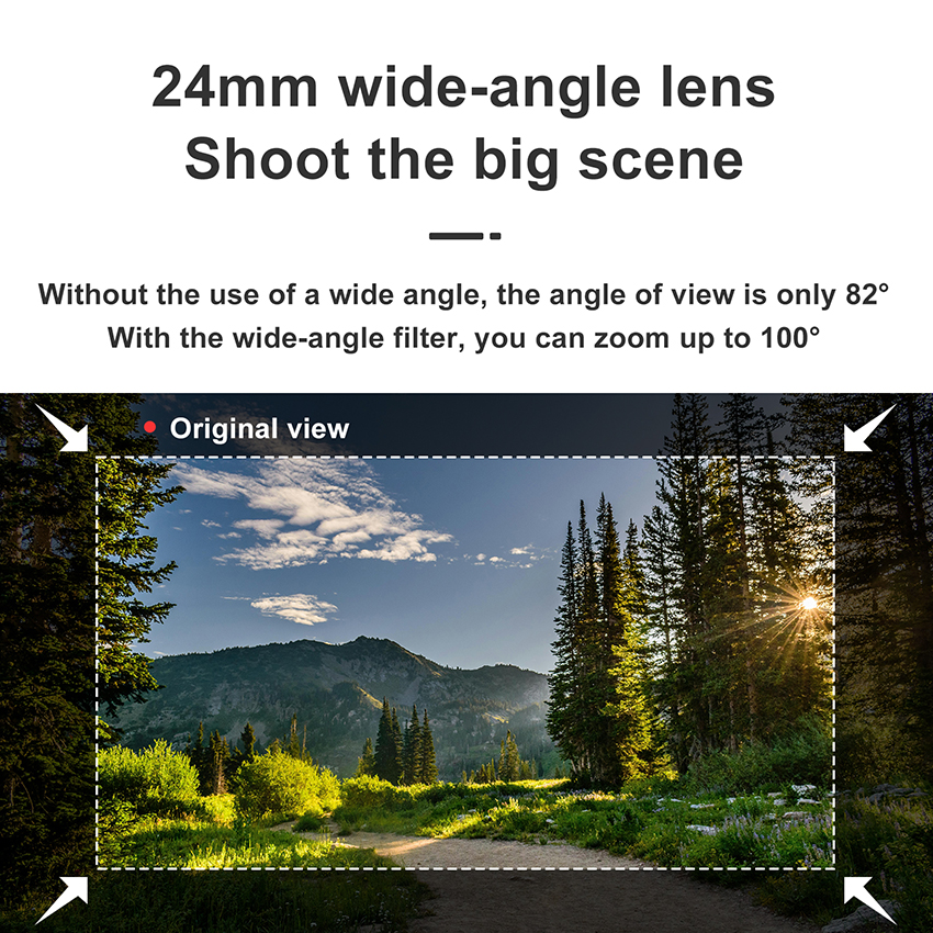 l Without the use of wide-angle shooting angle of view 82 ° after the use of wide-angle filters can be extended to 100 °, 24mm wide-angle lens to shoot shocking scenes