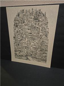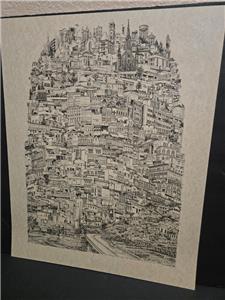 VERY RARE WELCOME TO KEOKUK IOWA COLLAGE BY LEOSCHEN REFLECTIONS PRINT SIGNED CARTOON MAP PENCIL ART