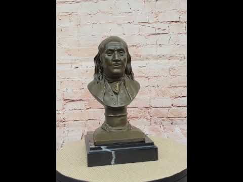This exquisite bronze bust of Benjamin Franklin pays homage to one of the United States' most influential Founding Fathers. It captures his dignified features and wise expression, serving as a timeless tribute to his legacy of innovation and leadership. The sculpture conveys a sense of historical reverence and the enduring significance of Franklin’s contributions to American society.
