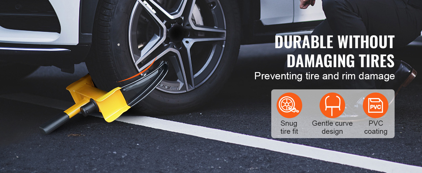 Das Reifenschloss ist mit einer PVC-Polsterung versehen, die sich weich anfühlt und Ihre Reifen und Ihr Fahrzeug schützt, ohne Abrieb oder Kratzer zu verursachen.