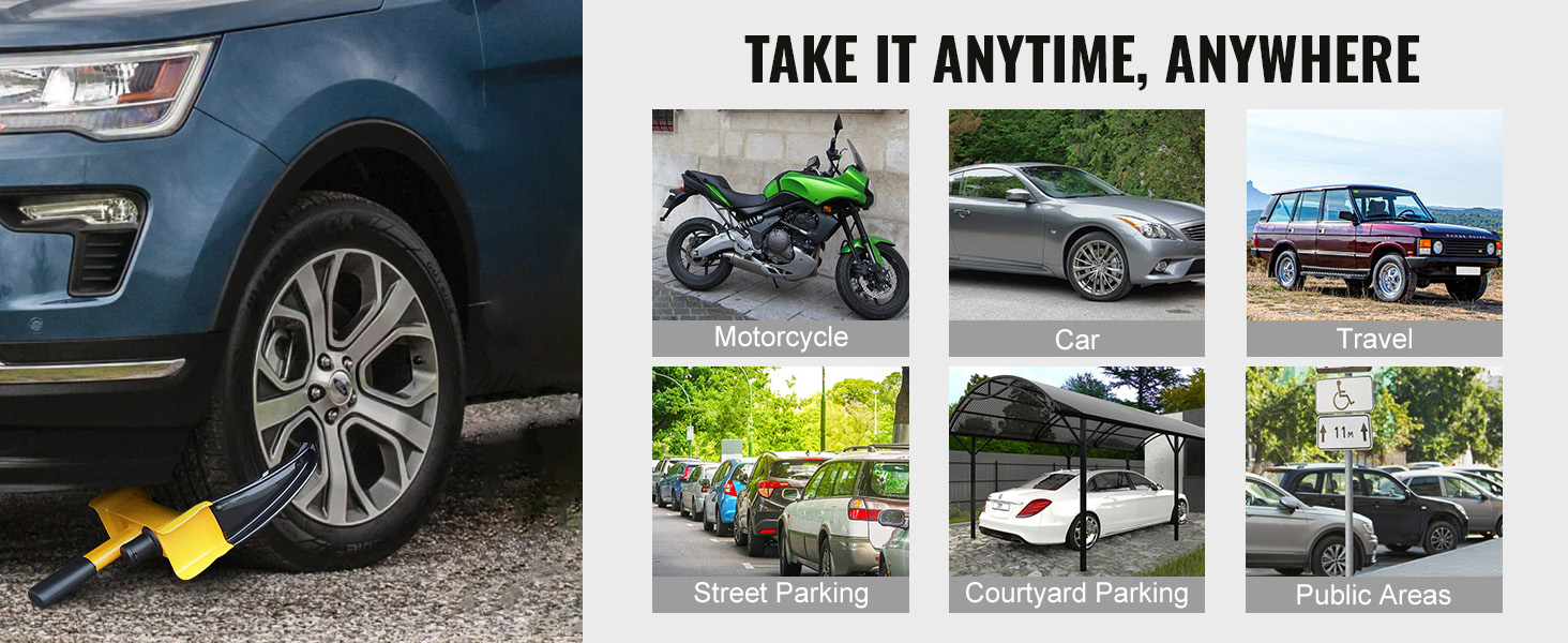 Einfach zu benutzen: Mit einem schnellen und einfachen 4-Schritt-Verfahren können Sie Ihren Reifen in nur 1 Minute sichern. Der rutschfeste Griff sorgt für sicheren Halt. Sie können es bequem im Kofferraum Ihres Autos verstauen und überall hin mitnehmen, ob zum Parken am Straßenrand, zur Lagerung auf dem Hof, in Fabriken, Supermärkten usw., um Ihr Fahrzeug rundum zu schützen.