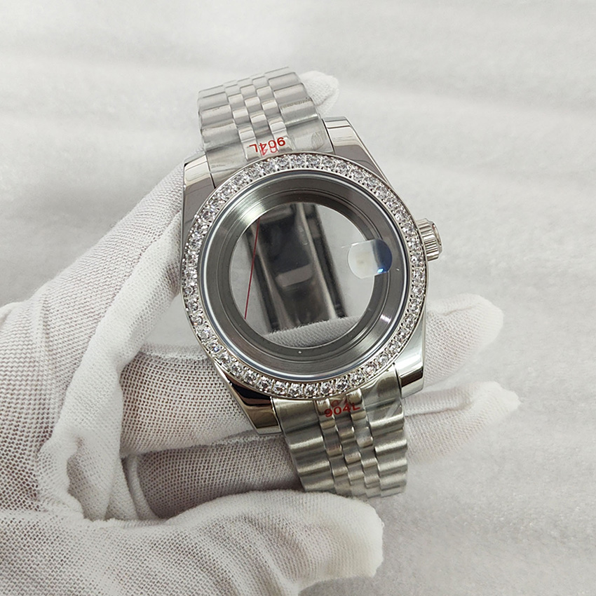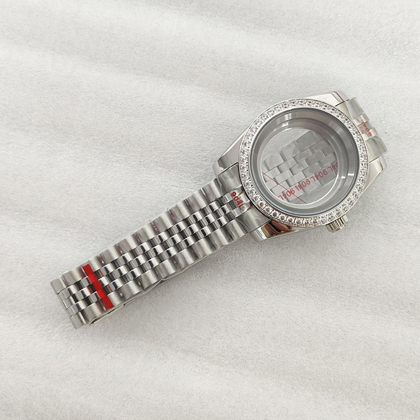 36/39mm Stone Bezel Logbook Stainless Steel Transparent Watch Case + Watch Strap Accessories for Japan NH35/NH36/4R/7S Movement