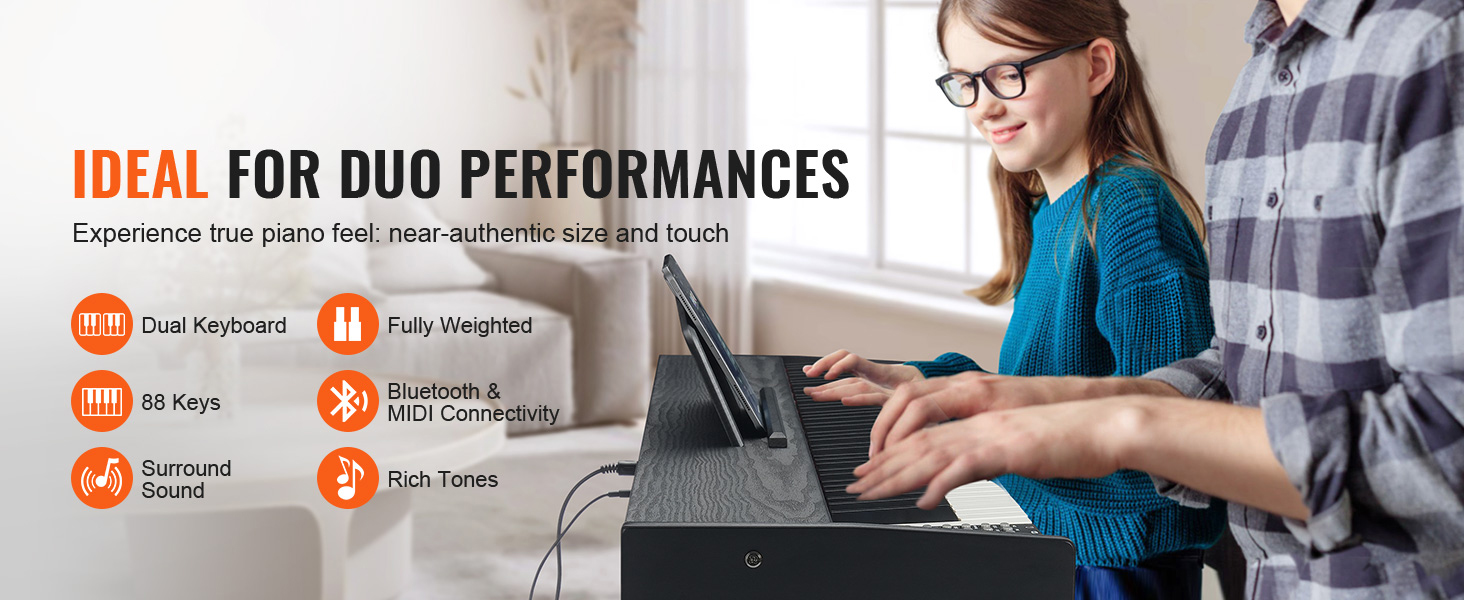 VEVOR 88-Tasten tragbares vollgewichtetes Klavier mit Doppeltastatur