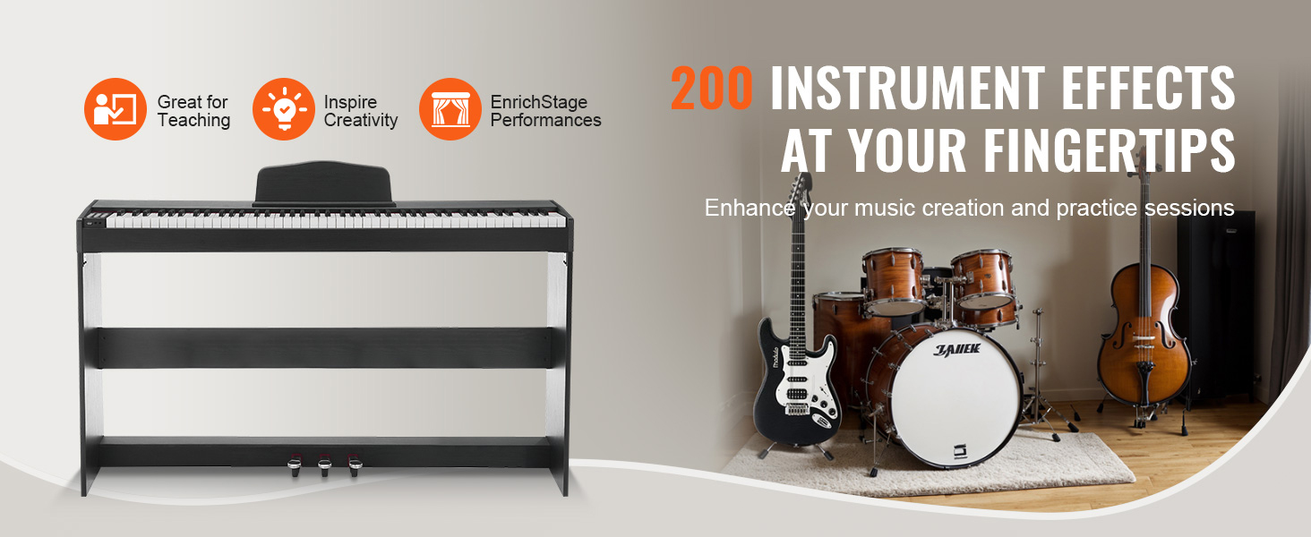 Das Digitalpiano kann die Effekte von 200 Instrumenten spielen. Anfänger können damit leicht die verschiedenen Instrumente und Beats verstehen und sich mit ihnen identifizieren.