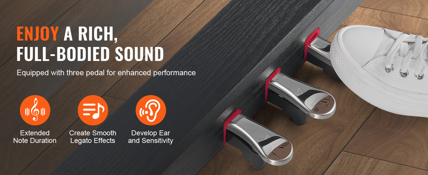 Das Haltepedal, das mit diesem gewichteten Keyboardpiano geliefert wird, hilft dabei, die Dauer der Noten zu verlängern, Legato-Effekte zu erzeugen und den Gesamtklang voller und dreidimensionaler zu machen.