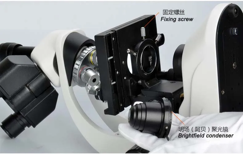 The prepared dark-field condenser is inserted into the hoop according to the direction shown in the figure.