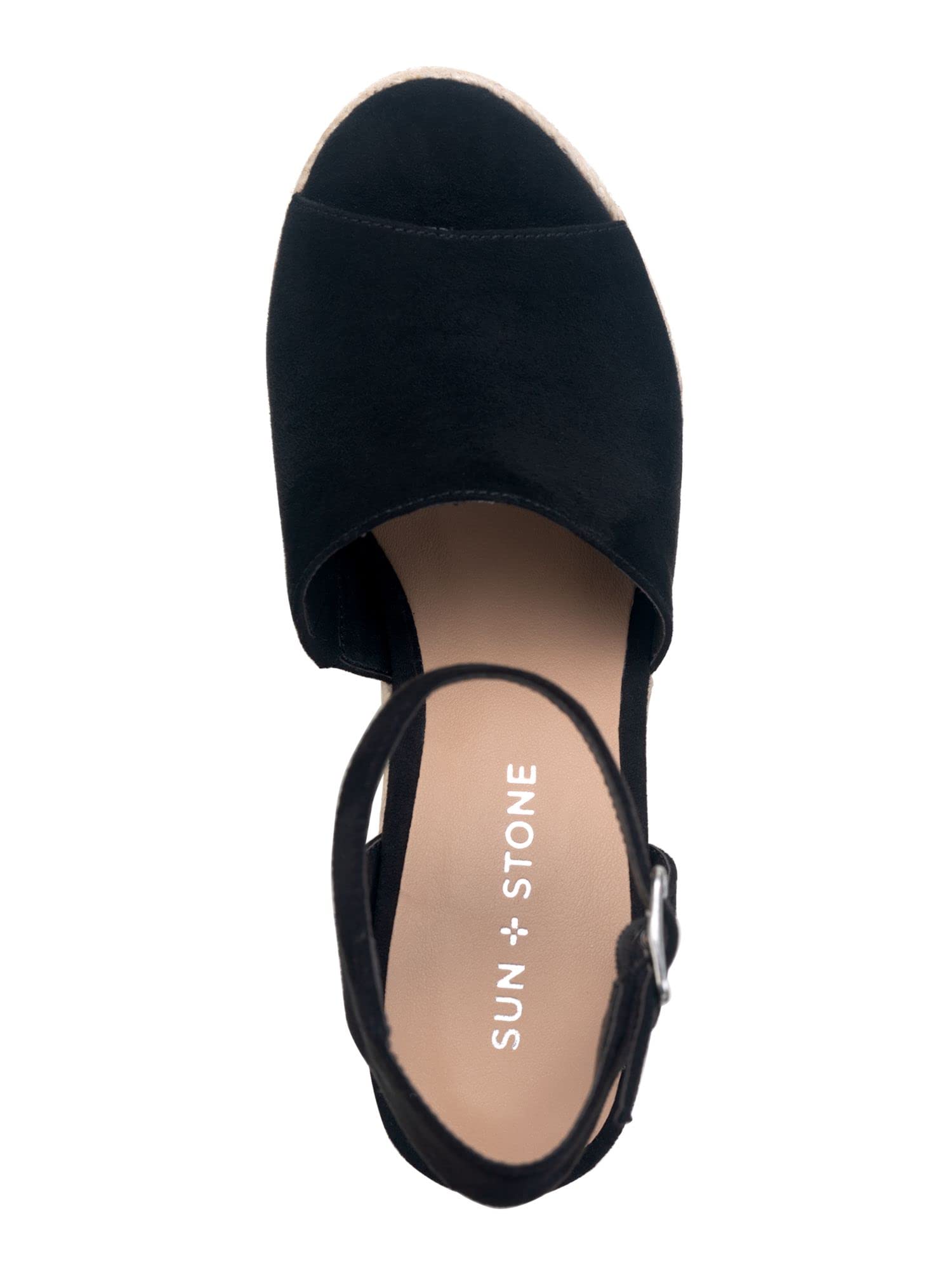SUN STONE Womens Fey Faux Suede Ankle Strap Heels Black 11 Medium (B,M)
