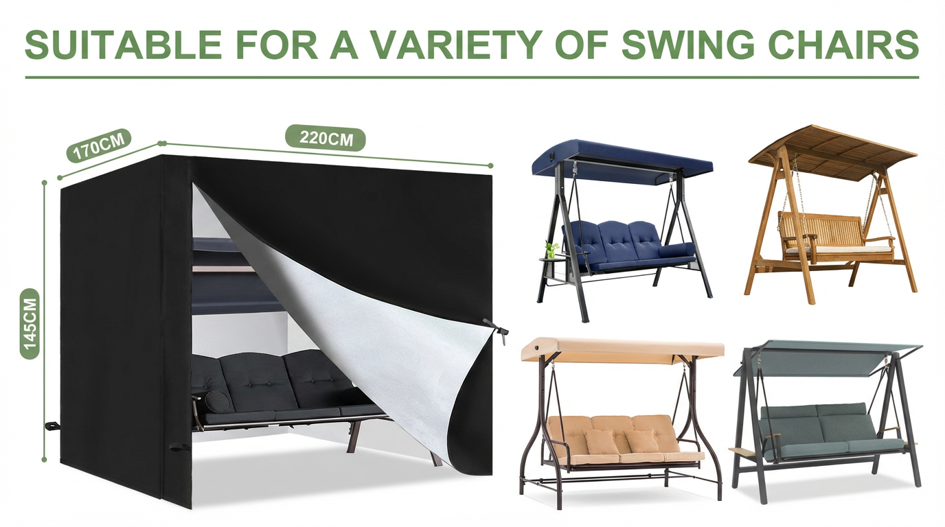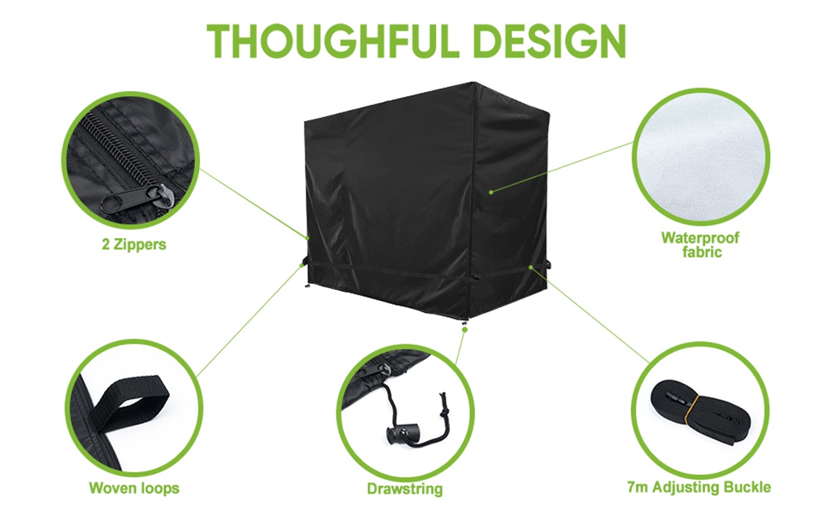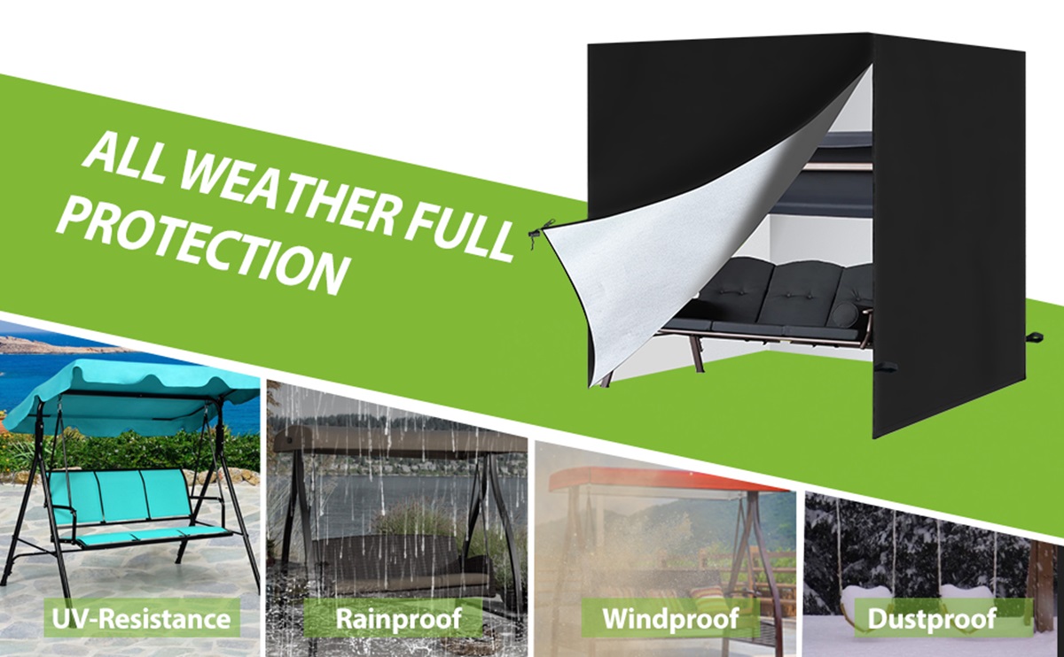 【Premium 210D Oxford Fabric】- Crafted from heavy-duty 210D oxford material for superior protection. Our garden swing cover offers exceptional waterproofing, UV resistance, tear strength and fade prevention for long-lasting durability.