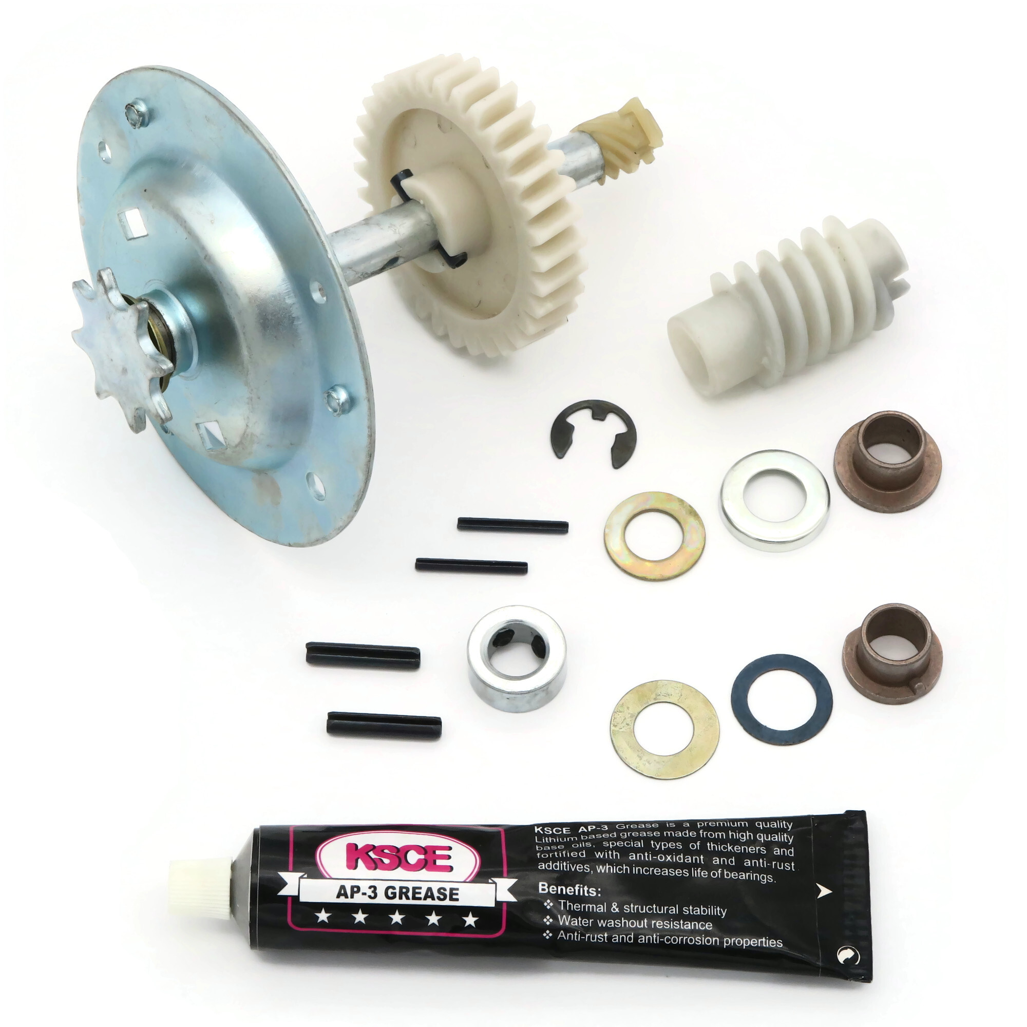 • Includes - (1) Gear & Sprocket Kit with Worm Gear, Grease, Motor Shaft Bearings, Sprocket Bearings & Hardware; comes as shown in the first image