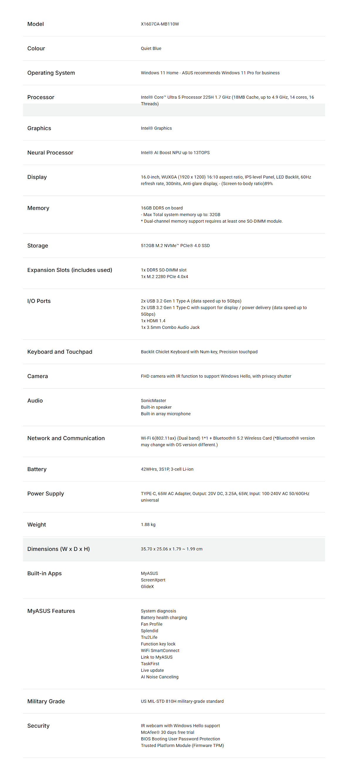 Product Specifications