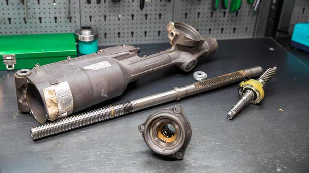 - Wenn der Käufer das Lenkgetriebe ohne Spurstangen erwirbt oder die Spurstangen selbst austauscht, muss sichergestellt werden, dass die Zahnstange beim Anbringen der Spurstangen nicht beschädigt wird. Verwenden Sie dazu Schutzbacken für den Montagevorgang. Es darf nur das zulässige Drehmoment verwendet werden.